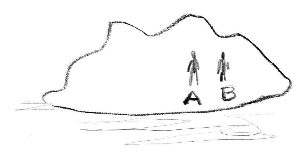 한 섬나라가 있다. 그곳에는 두 명이 살고 있다. 이 섬나라에는 아직 자본주의가 안 들어왔다. 그 두 명은 물물 교환을 하기도 하고 그냥 필요한 물건을 주고받았다.