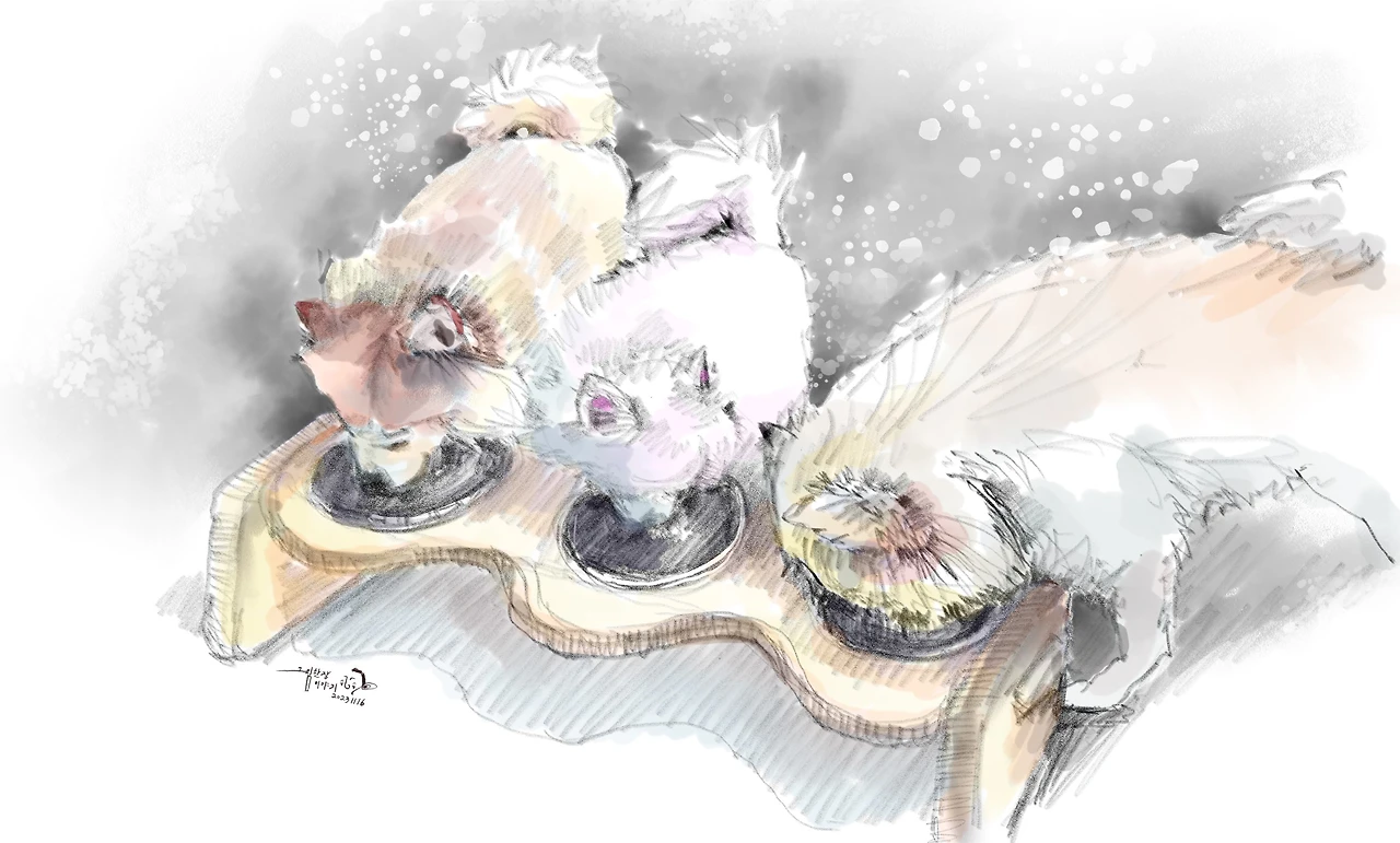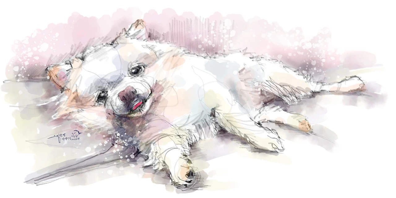 우리 강아지들 세 마리가 동시에 사료를 먹는 모습은 흔한 것이 아닙니다. 예전부터 자율 배식을 했기 때문에 각자 밥을 먹는 시간이 달랐습니다. (전문가들의 조언은 자율 배식보다 일정 시간에 급식을 하라는 것입니다.) 그림처럼 저렇게 옹기종기 모여 밥 먹는 모습을 보고, 제가 미소를 지을 수밖에 없는 이유입니다.
