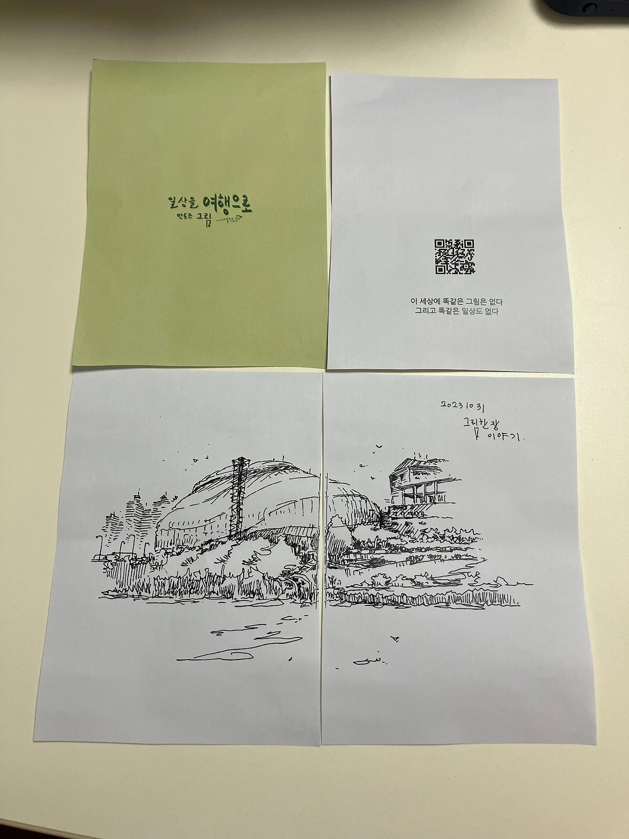 일상을 여행으로 만들 수 있다면 우리의 삶은 어떻게 변할까요? 산책을 하며 산책길 풍경을 드로잉 하는 작업을 꾸준히 하고 있습니다. 어느 날인가 드로잉북을 챙겨 산책을 나가는 순간이 설레기 시작했습니다. 여행이 시작된 것입니다.