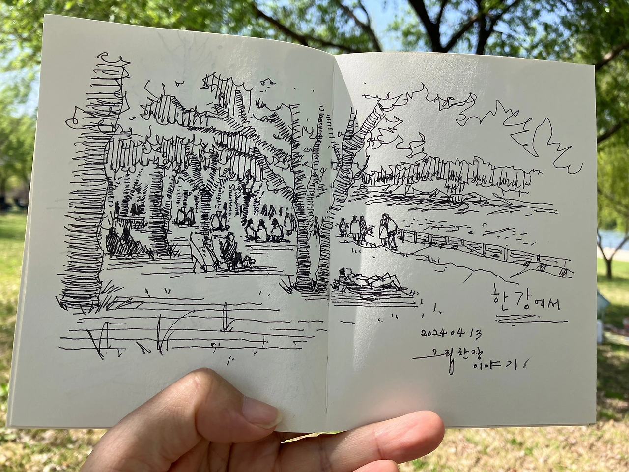 한강 공원 들판에 한가롭게 앉아있는 사람들을 보는 것만으로도, 그 속에 나도 포함되어 있다는 사실만으로도 힐링이 저절로 되는 듯합니다. 일상을 여행으로 만드는 첫 번째 행동은 햇빛이 있는 야외로 나가는 것입니다. 주변에 자연이 있다면 그곳을 걸어보세요. 분명 그날은 여행의 날이 될 것입니다.