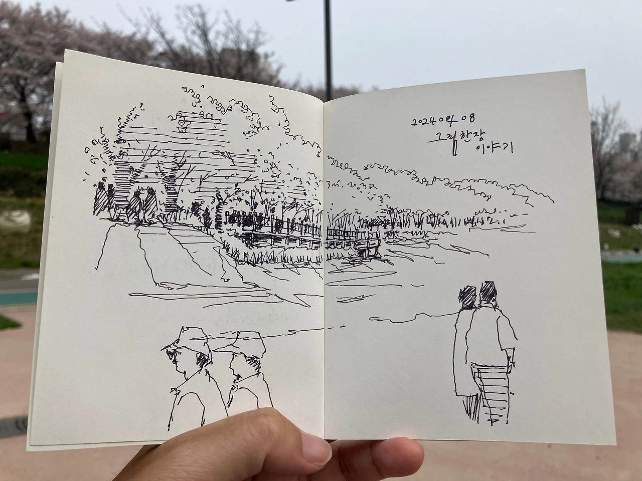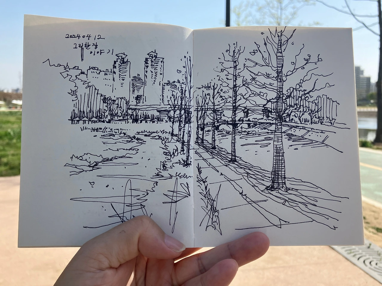 한강 공원 나들이를 주말에 종종 합니다. 겨울은 겨울대로, 여름은 여름대로 한강은 아름다운 풍경으로 저에게 즐거움을 선사합니다. 4월, 한강 풍경의 아름다움을 더 말할 필요가 있을까요?! 그만큼 한강을 즐기려는 인파도 넘쳐나죠.