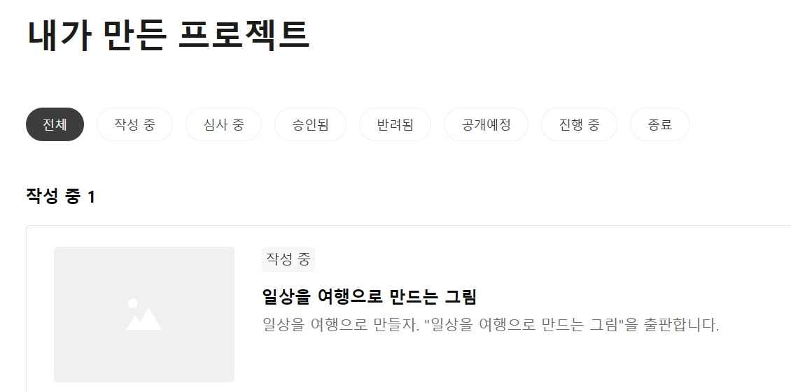 텀블벅의 펀딩 승인을 받아야 하는 것으로 알고 있습니다. 승인에 실패하는 경우도 종종 발생하는 것 같습니다. 과연 "일상을 여행으로 만드는 그림" 출간 프로젝트가 크라우드 펀딩에 올라갈 수 있을지 무척 궁금합니다.