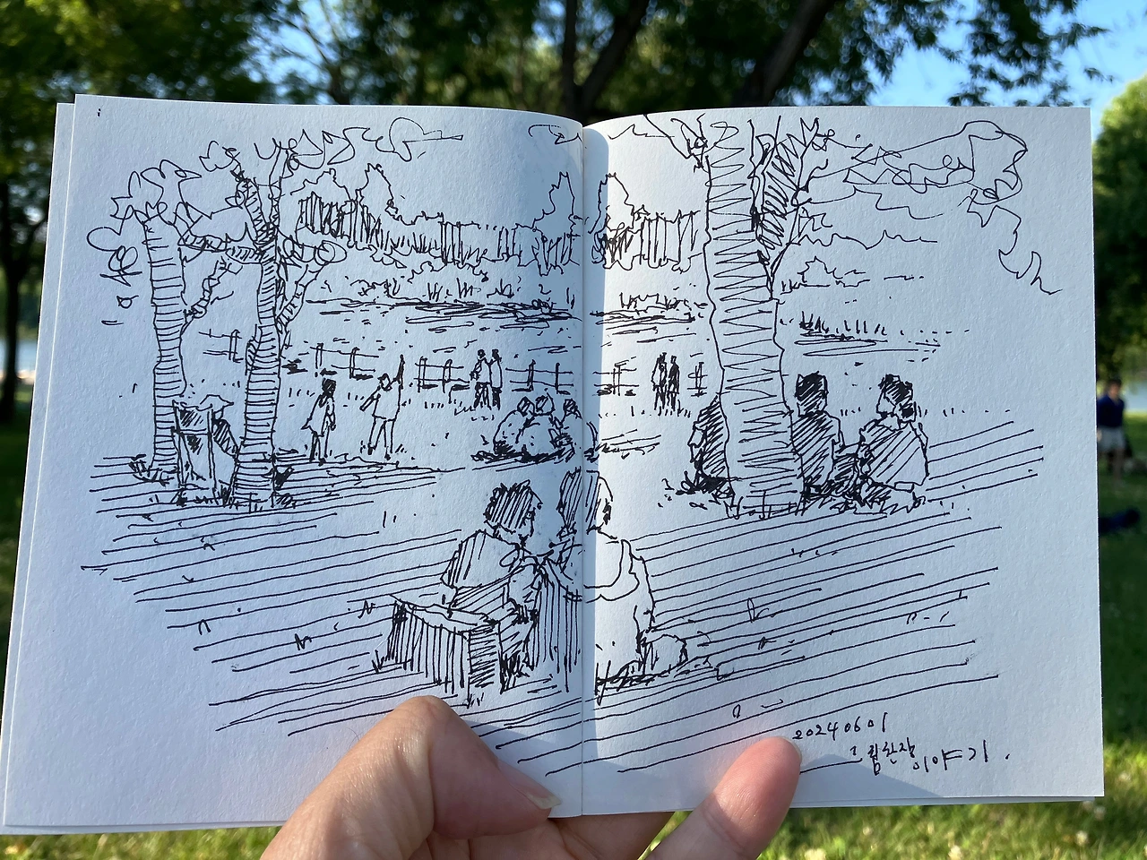 6월이 시작되는 그 순간 저는 한강에 있었습니다. 한강의 풍경을 보면서 "아~ 여름이구나!"라고 느낄 수 있었습니다. 그 이유가 날씨가 더워서만이 아니었습니다. 푸르름이 한층 더 짙어졌기 때문만도 아니었습니다. 청춘들과 젊은 연인들이 한강의 풍경을 가득 채웠기 때문이었습니다.