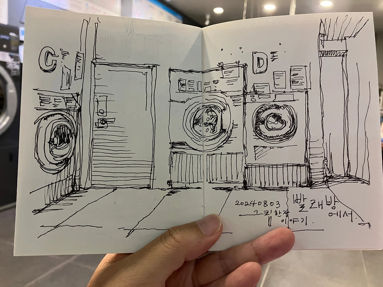 여름밤 "열대야"로 잠들기 힘듭니다. 어쩌다 한번 오는 열대야가 이제는 매일 밤 겪는 여름 일상이 되어가는 것 같습니다. 열대야로 잠 못 드는 밤, "빨래방"으로 피서를 가는 것도 괜찮은 것 같습니다. 냉방도 빵빵하고 기계가 빨래를 하는 동안 그림도 그릴 수 있고.. 우리 동네 빨래방은 아니지만 다른 동네 빨래방에는 다양한 편의 시설이 있는 것 같더군요.