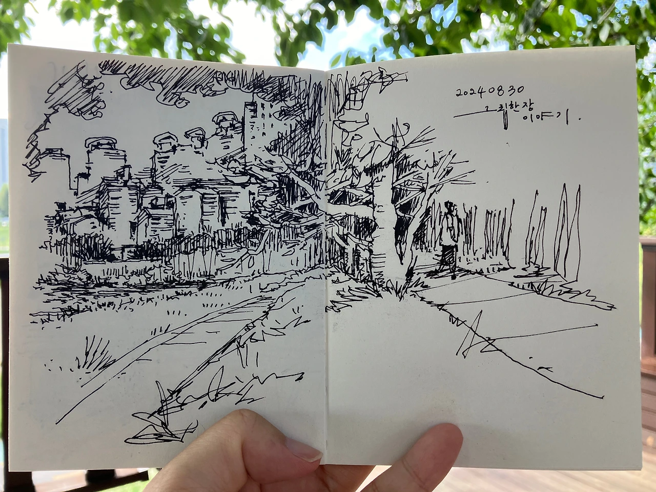 2024년의 9월이 시작되었습니다. 끝날 것 같지 않았던 폭염도 조금씩 열기가 식고 있습니다. 그늘 속에서는 제법 바람이 선선합니다. 집 밖에서 그림을 그리기에 좋은 계절이 시작되었습니다.