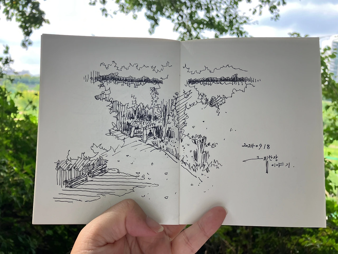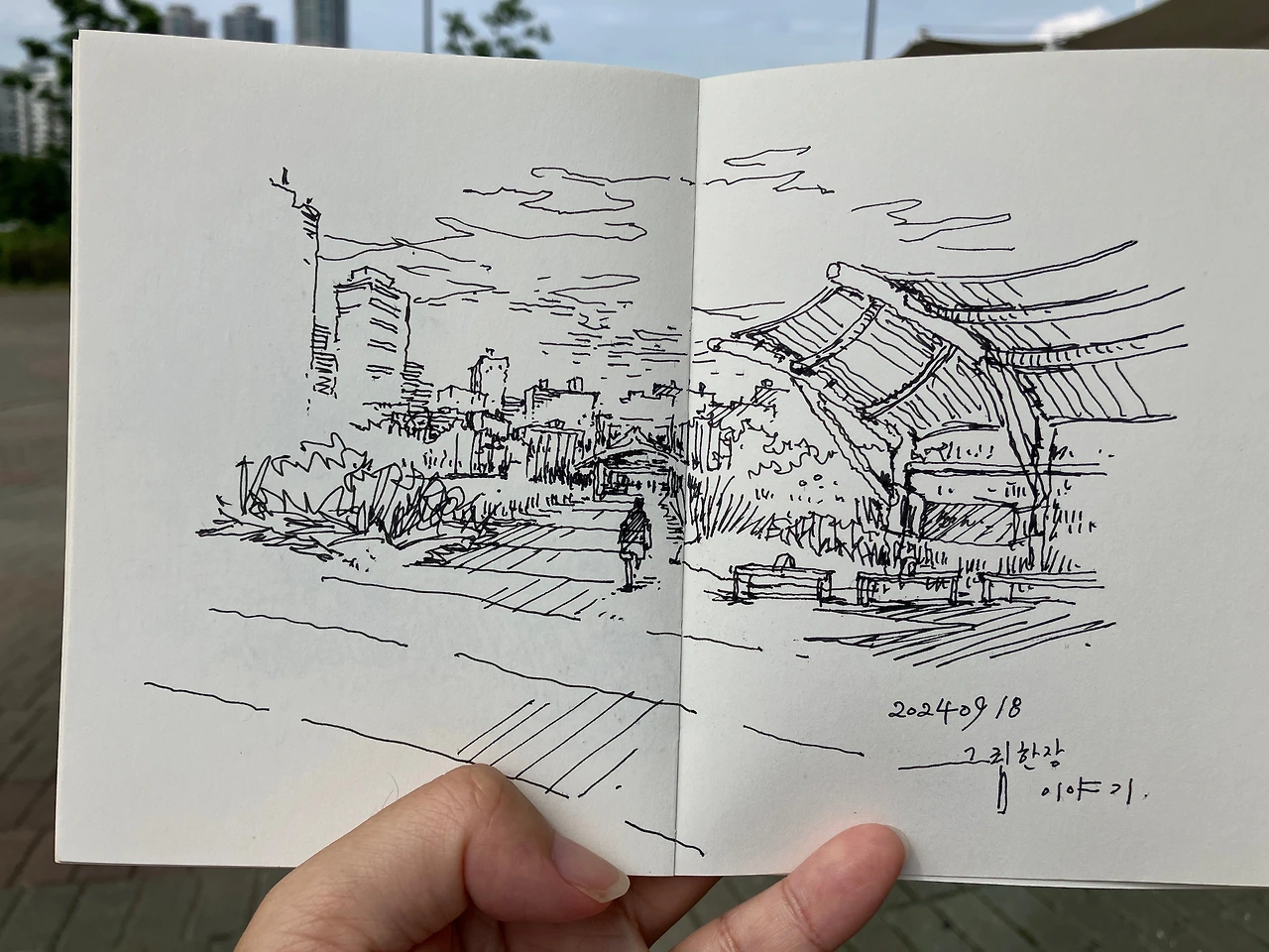 "그림 속 작은 여행"이란 매거진을 새로 시작했습니다. 산책이라고 하기에는 애매한, 동네에서 좀 멀리 떨어진 곳을 돌아다니는 이야기를 하고 있습니다. 추석 연휴 동안 서울에 있었던 저의 작은 여행 이야기를 담았습니다. 그 작은 여행에서 현장 야외 드로잉도 합니다. 그때의 드로잉들은 새 매거진 ("그림 속 작은 여행")에서 확인할 수 있습니다. 아래는 같은 기간 동안 동네를 산책하며 드로잉 했던 장면들만 모았습니다.