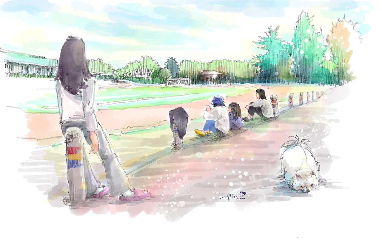 시골에서 일주일을 보냈습니다. 지방 소멸을 걱정하는 지금, 확실히 도시의 편리한 삶과는 많이 다르더군요. 아이스 아메리카노 한잔을 사 먹기 위해 자동차를 타고 번화가까지 나가야만 했습니다. 도시에서는 집 밖을 나서자마자 커피 가게들이 널려있는데 말이죠. 하지만 그림을 그리면서 깨닫게 됩니다. 도시에서는 결코 느껴보지 못할 감정을 느끼게 된다는 것을요. 가슴 벅찬 감동과 왠지 모를 슬픈 감정들까지 말이죠.