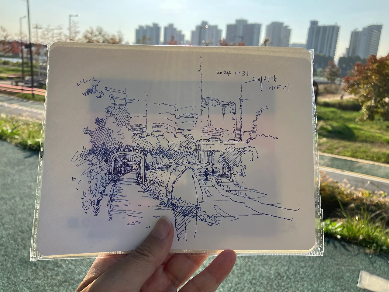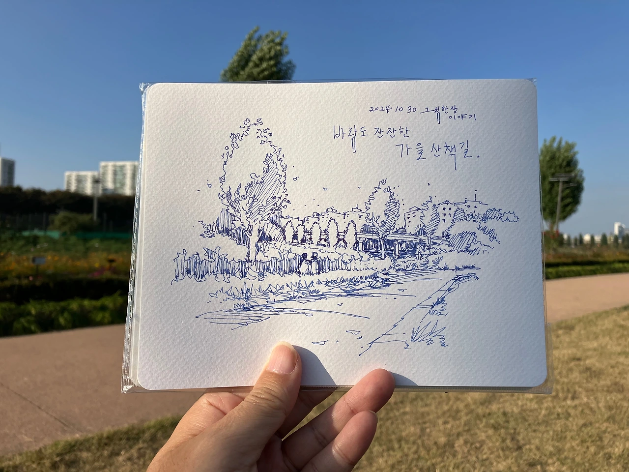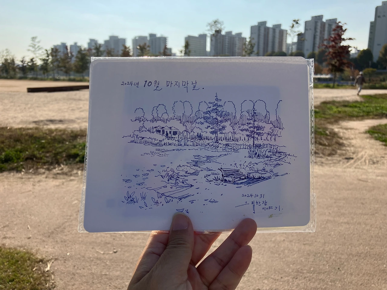 글을 쓰고 있는 지금, 2024년 11월 3일입니다. 내일부터 시작하는 새로운 주는 날씨가 많이 추워지는 예보가 나와있습니다. 그 추위가 겨울을 여는 신호탄이 될 것도 같습니다. 지금도 아침의 공기는 차가워서 옷깃을 여미게 됩니다. 더 추워지기 전에 부지런히 그림을 그리러 집 밖을 나가봅니다.