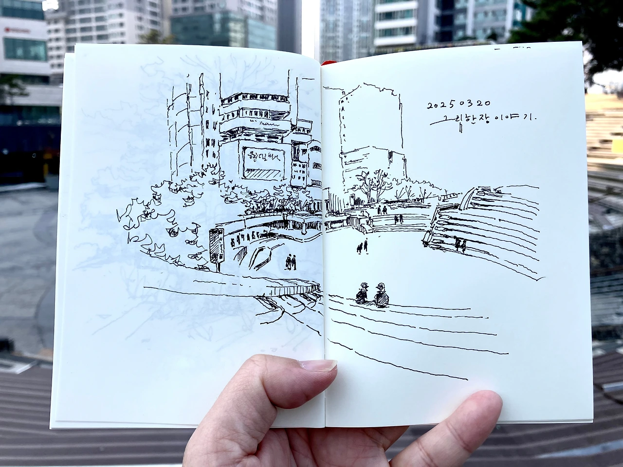 동네 백화점이 올해 안에 없어진다고 합니다. 개인적으로 참 자주 방문했던 장소인데 무척 아쉽네요. 곧 사라질 그 모습을 기록으로 남기려고 노력하고 있습니다. 사진도 좋고, 영상도 좋지만 그림 속에 담긴 그 장소의 모습이 저의 마음을 흔듭니다. 그림은 그린 사람의 감정을 따뜻한 온기로 발산합니다. 켜켜이 쌓인 시간의 결은 감정으로 차곡차곡 쌓입니다. 그 감정을 한 장으로 나타낼 수 있는 것은 그림 밖에 없을 것 같습니다.
