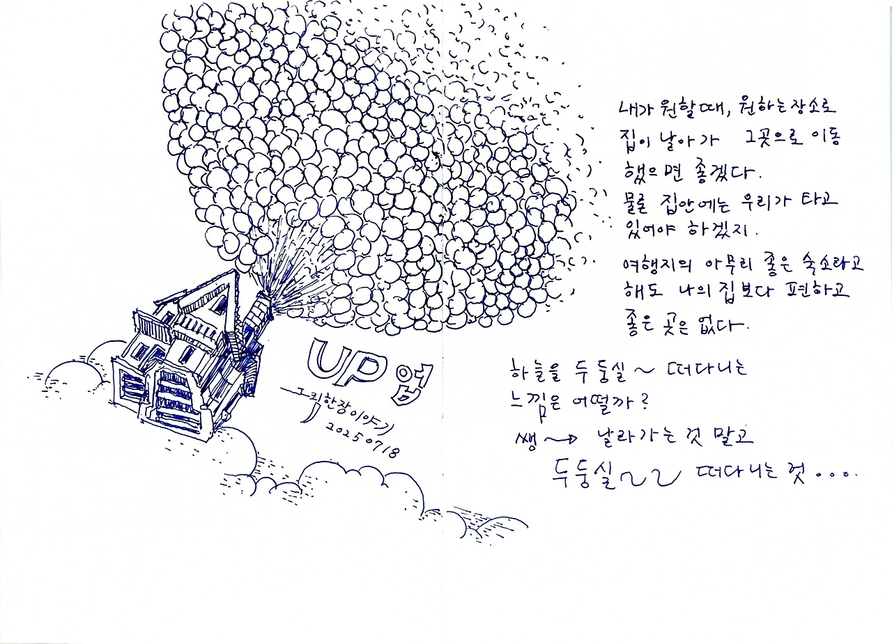 픽사의 애니메이션 "업(UP)"에서는 살고 있는 집에 풍선을 달아 하늘을 나는 장면이 등장합니다. 그 장면을 보고 저는 생각했죠. "여행 갈 때 저렇게 집을 가지고 가면 얼마나 편할까?" 여행이 다 좋은데 익숙하지 않은 것들 속에서 생활해야 한다는 불편함이 피로감을 많이 줍니다.