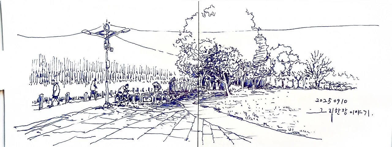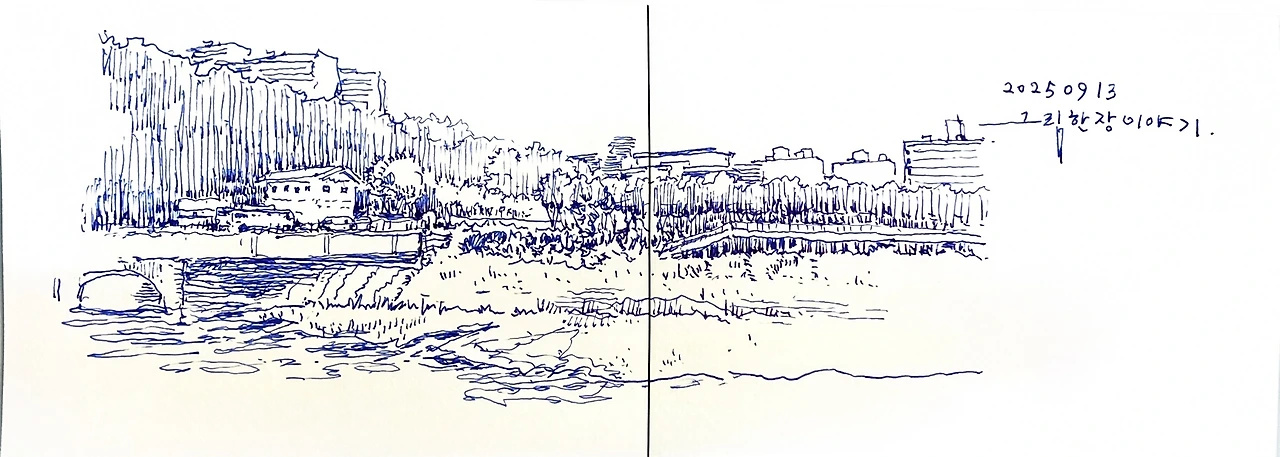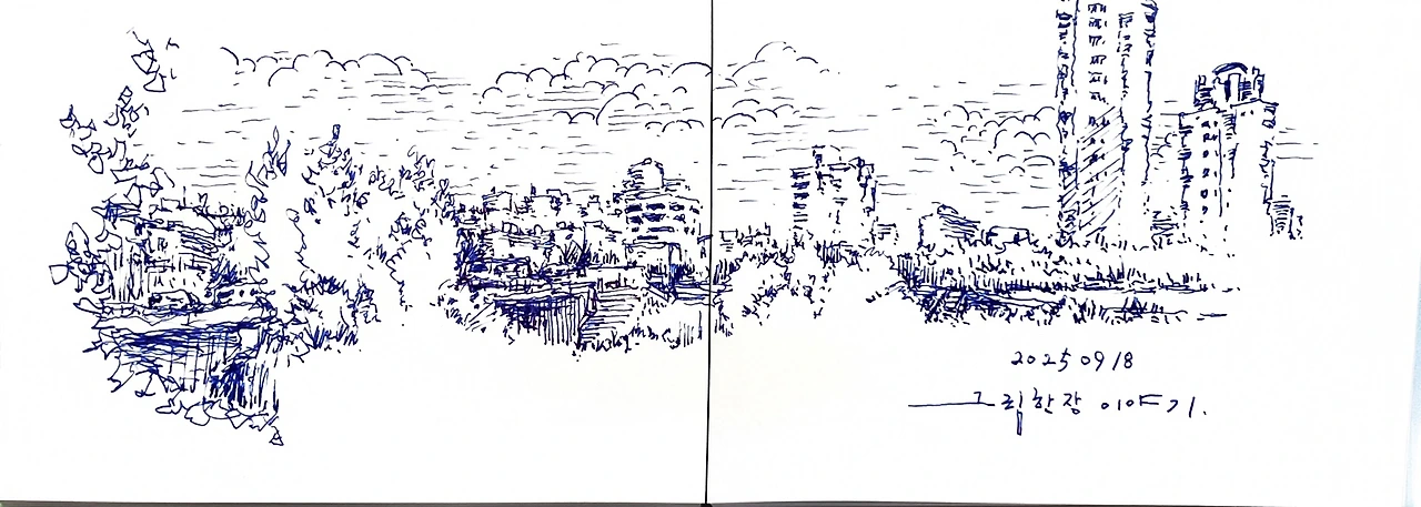 아래 그림을 그린 날, 정말 환상적인 가을 날씨였습니다. 기분이 좋아 드로잉을 두 개나 했네요. 햇빛 아래에서 더운 듯 말듯하면서도 시원한 바람이 상쾌함을 더해줍니다. 그런데 벌써 아침, 저녁에는 쌀쌀한 감이 있더군요. 갑자기 추위가 오는 것은 아닌지 모르겠네요. 짧아서 더 소중한 가을입니다.
