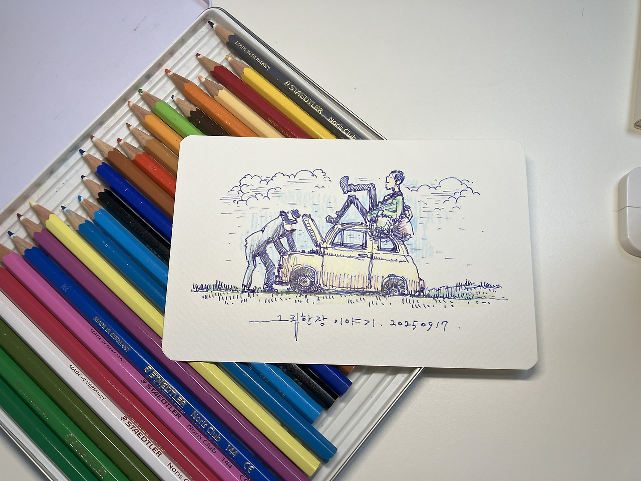 "그래, 나에게는 색연필이 있었지!" 색연필이 있었다는 것도 잊어먹고 있었네요. 정말 오랜만에 색연필로 그림에 색을 입혔습니다. 디지털 그림과 달리 아날로그 그림에서 색을 칠한다는 것은 이제 다시는 이전으로 돌아갈 수 없음을 뜻합니다.