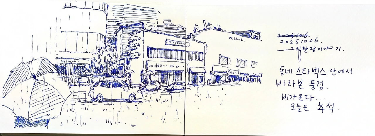2025년의 추석 연휴는 길었습니다. 올해는 집에서 그 시간을 보냈습니다. 부암동 쪽으로 작은 여행도 갔었죠. (그림 속 작은 여행: 부암동에서 광화문까지 01 , 02) 물론, 일상을 여행으로 만드는 그림도 틈틈이 그렸습니다.