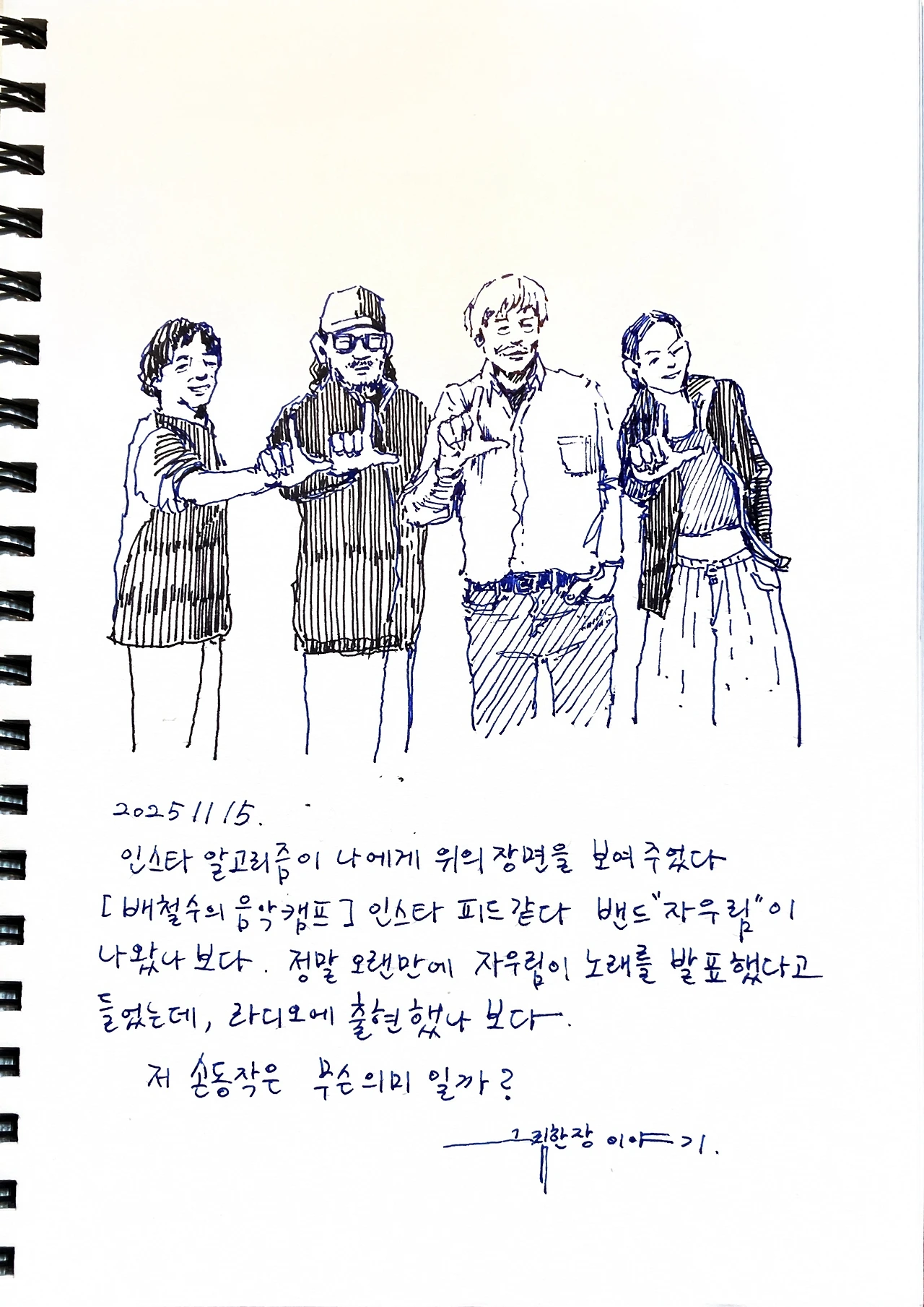 인스타그램 알고리즘이 저에게 피드 하나를 추천했습니다. 라디오 [배철수의 음악캠프]의 피드였습니다. DJ 배철수 씨와 밴드 "자우림"이 함께 포즈를 취하고 있는 모습이었습니다. 자우림이 새로운 앨범을 발매했다는 소식을 어렴풋이 듣긴 했었는데 그것과 관련된 모습인 것 같더군요.
