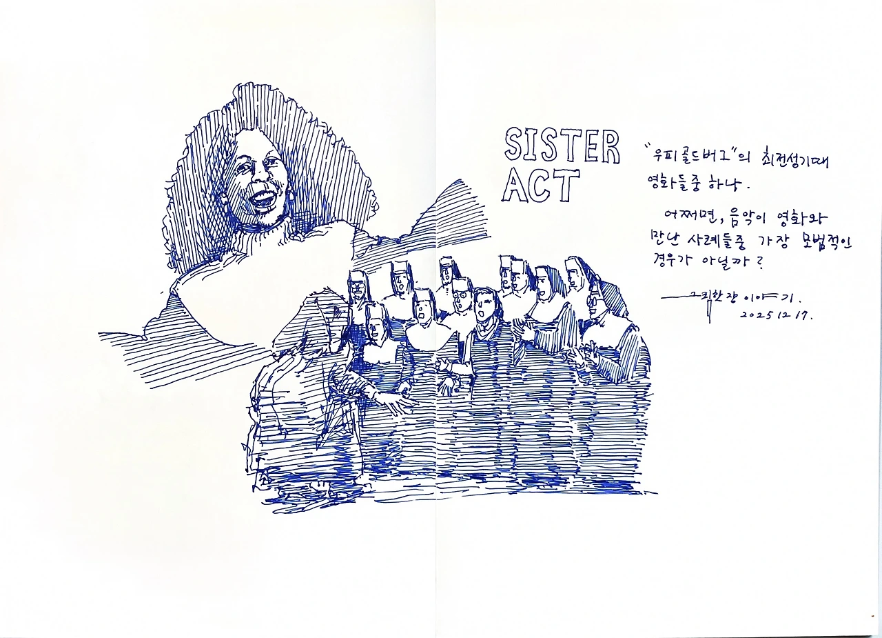 배우 "우피 골드버그"의 인기 최정점이 어쩌면 바로 이때였을지도 모릅니다. 수많은 그녀의 명작들이 있지만 비주얼적으로 저의 뇌리에 박혀있는 이미지는 수녀복을 입은 모습입니다. 특히 신나는 복음성가(?)를 부르고 합창단을 지휘하는 모습은 그녀 이외에 다른 누군가를 상상할 수 없습니다.