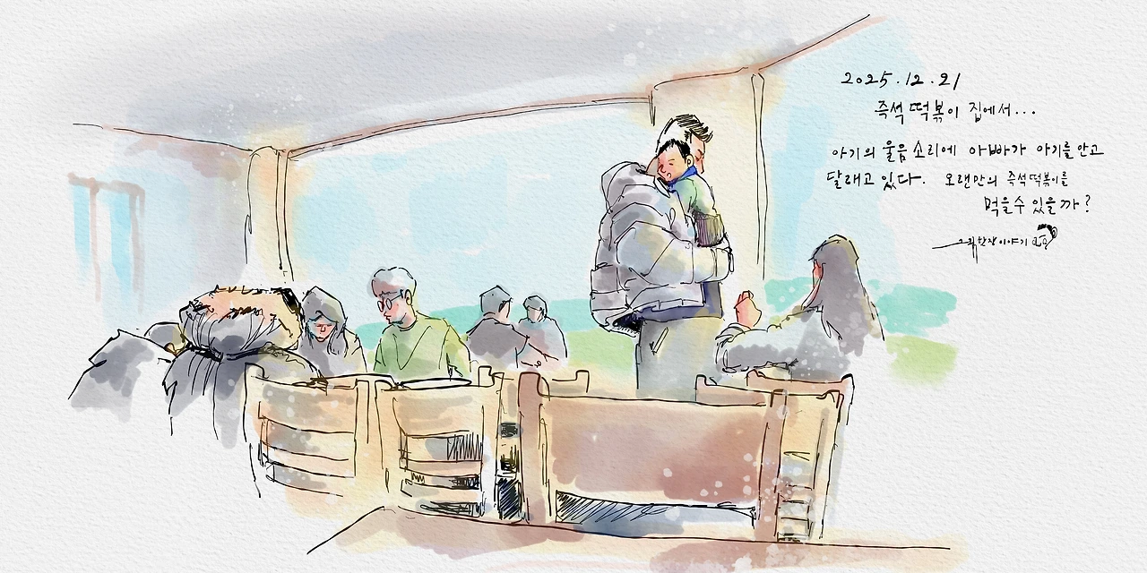 2025년 12월, 즉석 떡볶이집에서 마주한 풍경에 미소가 퍼집니다. 소박하고 평화스러운 일상의 모습에 행복함이 몰려옵니다. 2025년을 마무리하는 장면으로 이 모습을 가슴에 담아 갑니다.