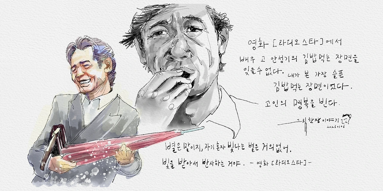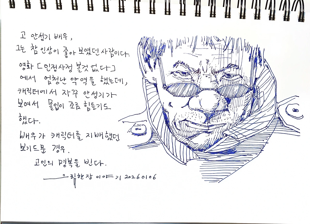 2026년, 대한민국 영화 산업의 전망은 밝지 않습니다. 영화관을 찾는 관객의 수는 급감하고 있고 영화의 질적 수준도 예전만 못하죠. "안성기"라는 대한민국 영화계의 거목이 사라졌음에 비통합니다. 그냥 배우가 아닌 "영화배우"라는 수식어를 달수 있는 영화인 "안성기"가 그립습니다. 고인의 명복을 빕니다.
