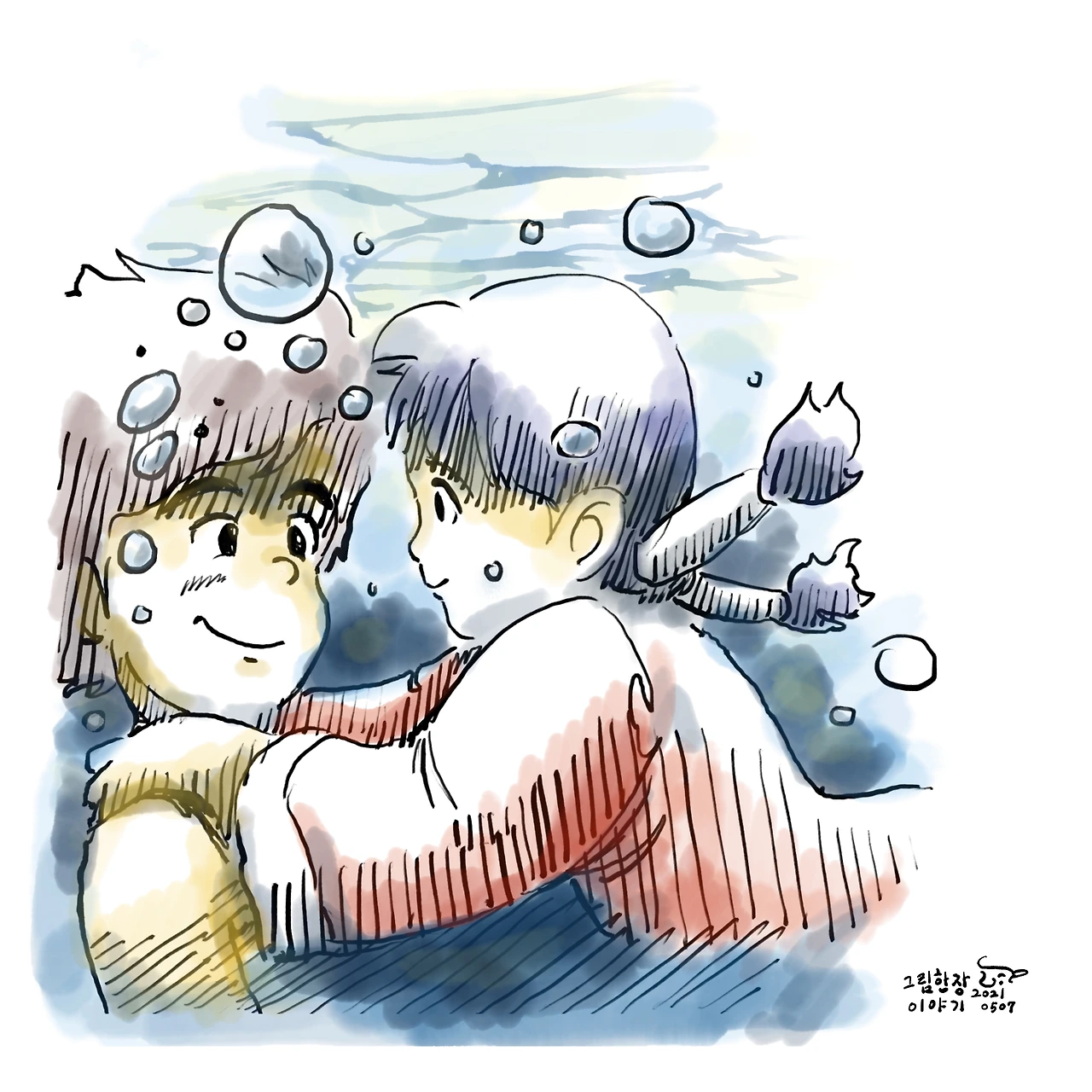 우연히 그린 그림이 마음에 들 때가 있습니다. 이 그림이 그랬어요. 그래서 처음으로 저의 스마트폰 잠금화면 배경을 이 그림으로 바꾸었습니다.