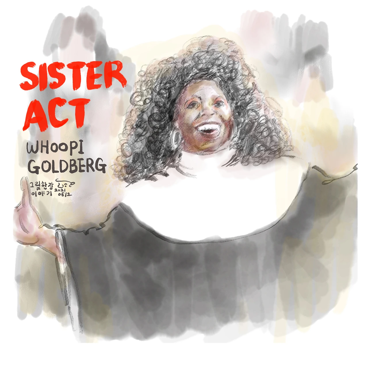 시스터 액트 "우피 골드버그" (iPad 7, Adobe Fresco)