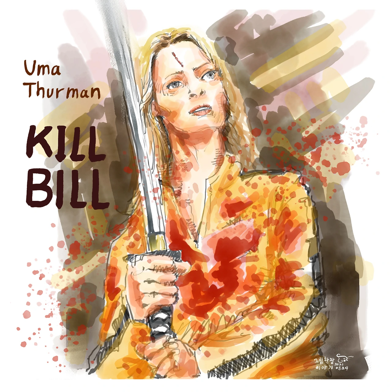 킬빌 여자 캐릭터 드로잉 3부작입니다. 일단 우마 서먼. 1편의 마지막 칼부림은 잔인하면서도 눈을 뗄 수 없게 만듭니다.
