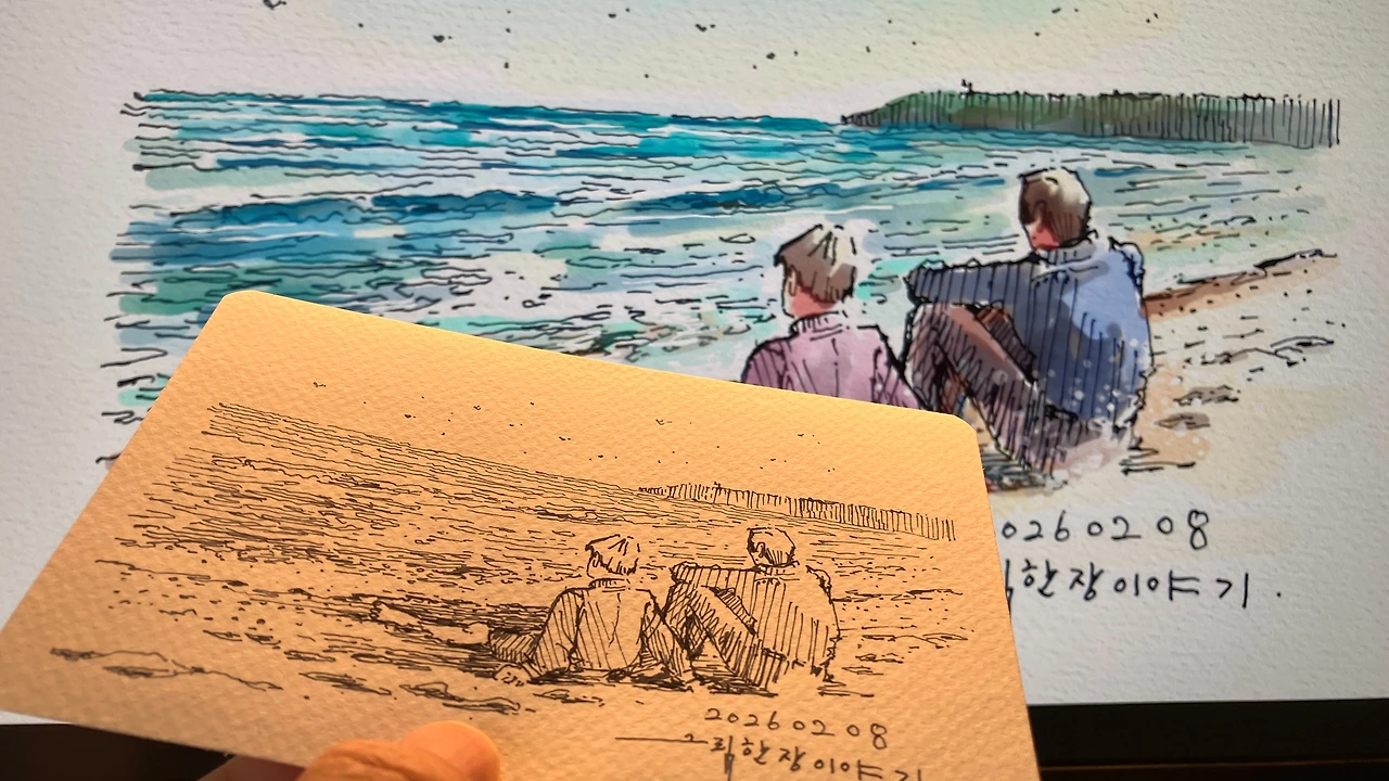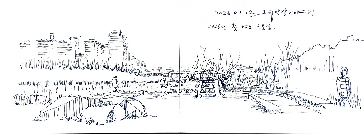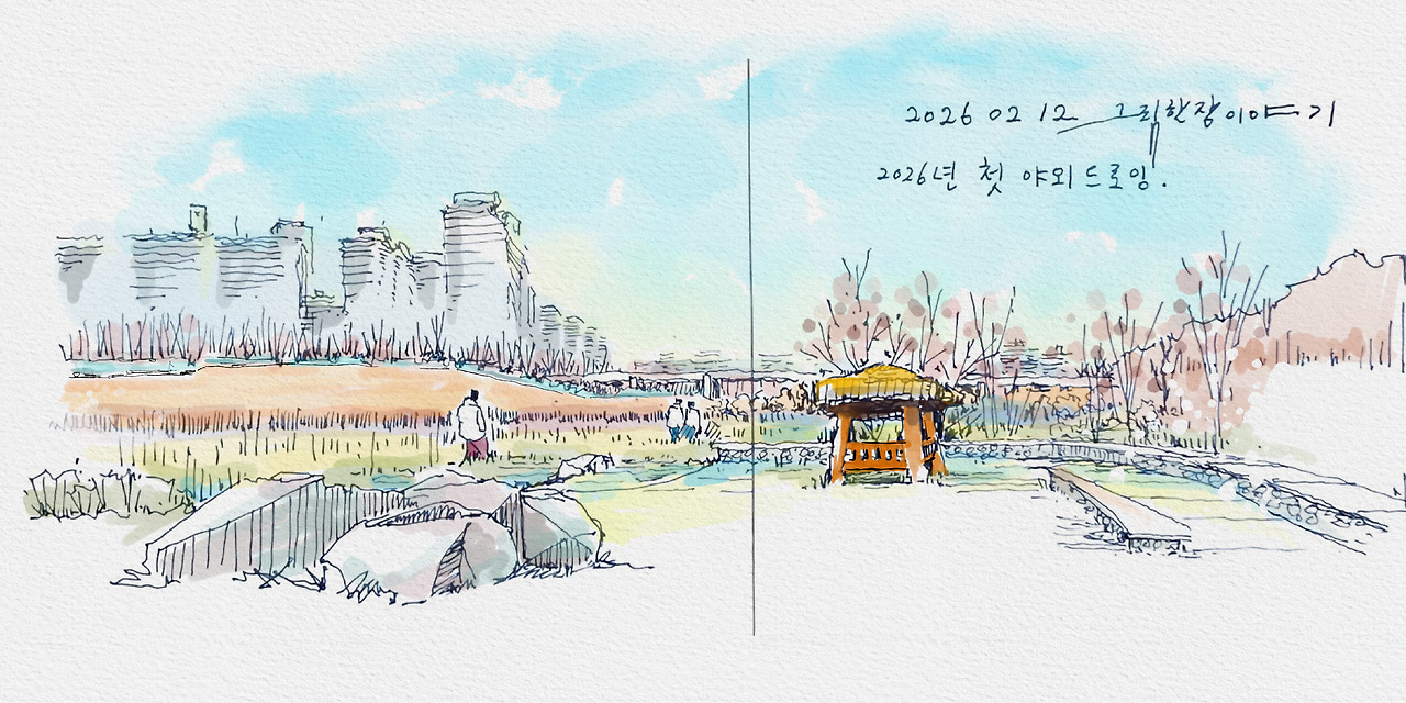 지난 글, [2026년, 첫 야외 드로잉]에 담겼던 현장 드로잉도 아날로그 그림입니다. 그 그림에도 디지털의 색을 입혀보았습니다