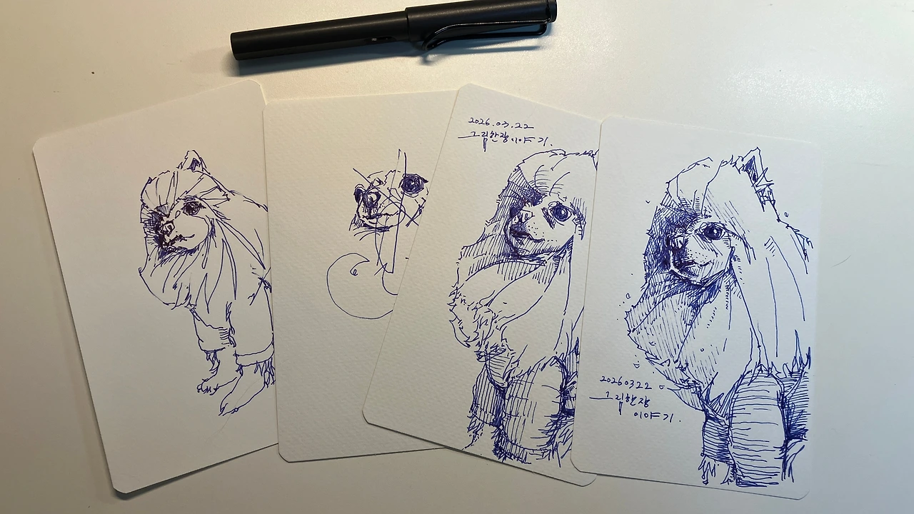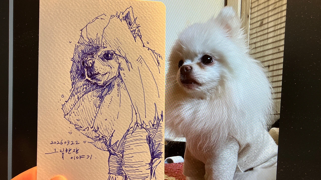 위의 그림 모델은 강아지 "오이"입니다. "오이야~ 내가 너, 얼굴 더 작게 그려줬다." 참고로 우리 집에는 3마리의 강아지들이 있습니다. "오이", "모카" 그리고 "메이"입니다.