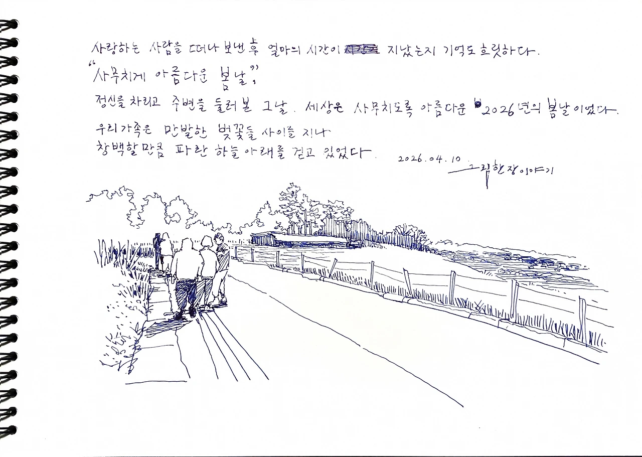 사랑하는 사람을 떠나보낸 후 얼마의 시간이 지났을까? 머릿속이 흐릿했다. 정신을 차리고 주변을 둘러본 그날, 세상은 사무치도록 아름다운 2026년의 4월의 봄날이었다.