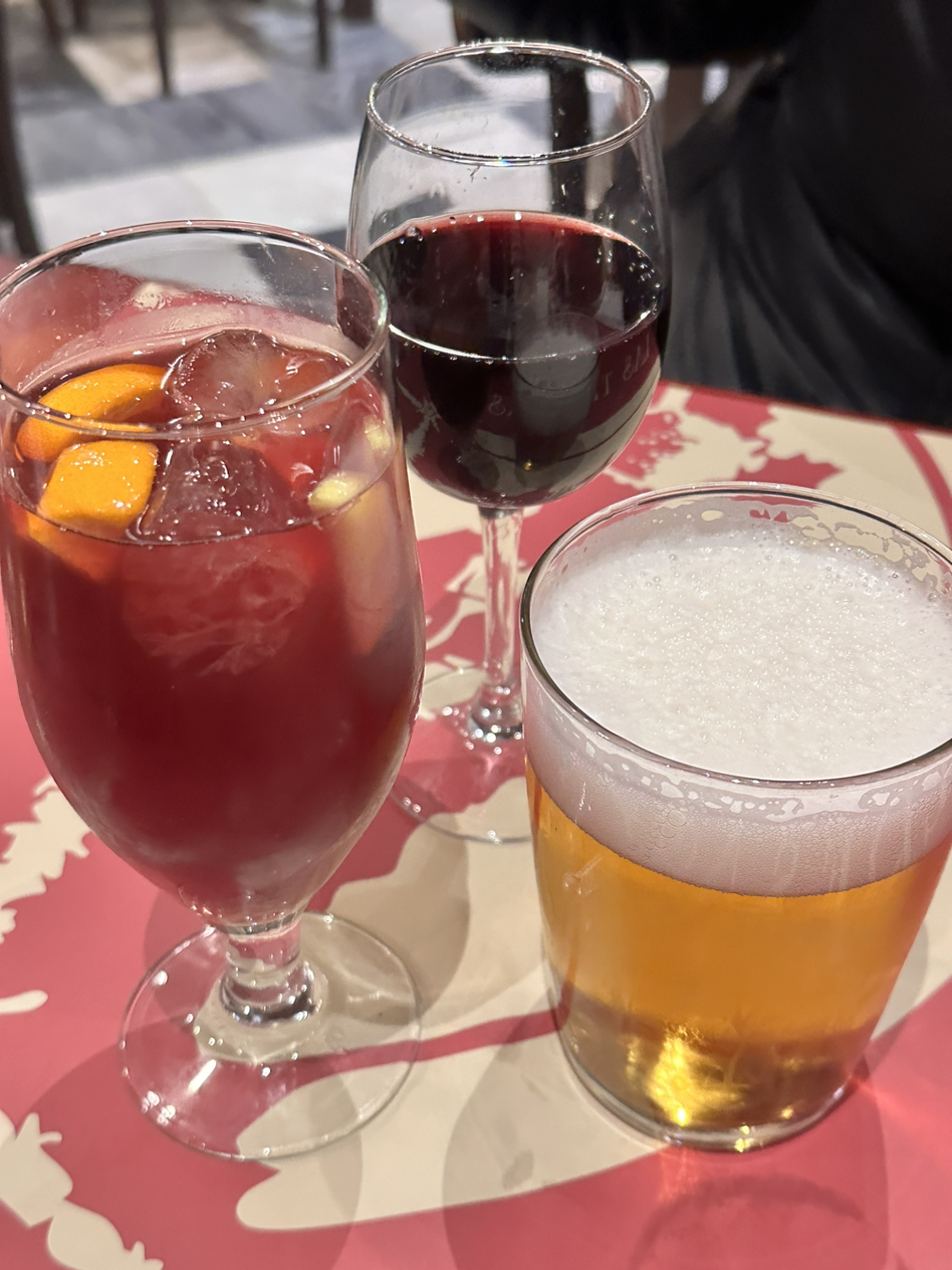 오늘도 호텔에서 간단하지만 든든하게 라면과 햇반을 먹고 잠깐 쉬었다. 그러다가 스페인 현지식으로 간단한 타파스에 술 한 잔을 하고 싶어서 엄마 언니랑 근처 타파스 바로 향했다. 아빠는 잠깐 자다가 합류한다고 하셨지만 결국 오지 못했다. 셋이서 샹그리아. 레드 와인 그리고 맥주를 주문하고 시금치 볶음과 하몽을 주문했다. 하몽이 나오는 순간, 이건 진짜 하몽이구나를 직감했다. 커다란 덩어리에서 썬듯한 비주얼에 빛깔까지 전에 마트에서 사 먹은 하몽, 한국에서 먹은 하몽과는 달랐다. 한 입 먹어보니 정말 향과 맛, 식감이 남달랐다. 충격적으로 새로워서 나에게 ‘하몽’의 존재를 다시 알게 해 줬다. 시금치 볶음은 익숙한 나물이면서도 이국적인 향신료의 향이 나서 맛있었다. 샹그리아도 상큼하게 맛있어서 1시간 반 동안 엄마 언니랑 열심히 재밌게 수다 떨다가 왔다. 들어오자마자 글을 조금 쓰다가 씻고, 나와서 마저 쓰고 있다. 이제 행복한 내일을 위해 잠에 들려고 한다.