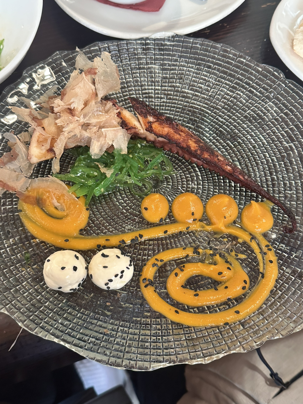 체크인하고 바로 점심을 먹으러 갔다. 호텔에서 추천해 준 구글 리뷰 좋은 맛집이었다. 역시 타파스 바였는데, 우리는 이베리코 목살 감자 구이와 뽈뽀, 트러플 후무스와 황새치 롤을 주문했다. 띤또라는 와인과 레모네이드를 섞은 술이 유명하다고 해 한 잔과 맥주, 그리고 해산물 요리를 많이 주문해 화이트 와인도 주문했다. 띤또는 샹그리아보다 탄산이 강하고 달달한 맛이었고 화이트 와인과 맥주도 맛있었다. 가장 먼저 나온 요리는 후무스였는데 트러플 향이 은은하게 나면서 굉장히 부드러운 후무스라서 빵과 잘 어울렸다. 다음으로 이베리코가 나왔는데 얇은 목살 구이에 살짝 달달한 소스와 감자 구이가 나왔다. 감자 구이는 완벽한 굽기에 부드러워서 맛있었지만 목살은 부드럽지 않아 아쉬웠다. 다음으로 황새치 롤이 나왔다. 황새치가 뭔지도 모르고 리뷰가 좋아서 주문했는데, 익힌 참치와 비슷했다. 소스와 미역 줄기 볶음과 함께 나왔는데, 소스가 익숙한 맛이었다. 마치 한국의 생선 조림을 먹는 것 같은 익숙한 맛이었다. 거기에 미역 줄기 볶음이라니 정말 한식 같았다. 황새치 구이까지 다 먹고도 조금 기다리니 뽈뽀가 나왔다. 가장 비싼 요리였는데 크기가 작은 문어 다리 하나만 나와서 아쉬웠지만 플레이팅은 예뻤다. 문어도 부드럽고 맛있었지만 감동적인 맛은 아니었다.