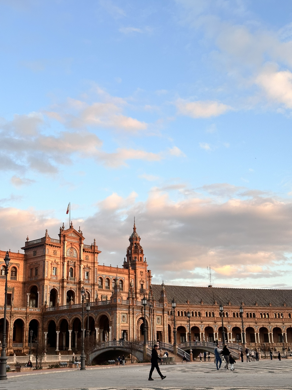 츄러스를 먹으며 잠깐 쉬었다 스페인 광장으로 향했다. 들어가는 순간 시내와는 다른 아름다움이 펼쳐졌다. 넓은 건물도 아름다웠고, 햇살이 비치는 물도 평화로웠다. 잠깐 앉아서 쉬다가 가족들은 건물 안으로 들어갔는데 나는 조금 더 쉬려고 벤치에 남아 오랜만에 책을 읽었다. 처음에는 카약 타는 사람이 많아 조금은 정신없었는데 어느 순간 보니 카약 시간이 끝났는지 연못이 한적해졌다. 그 순간 정말 평화롭고 고요하면서 조금씩 들리는 버스킹 소리까지 어우러져 이 공간에 혼자 있는 것 같은 평화로움이 느껴졌다. 그리고 책을 읽다가 가끔 책에서 빠져나와 사진을 찍을 때 이상하게 확 주변의 소리가 들리고 주변이 인지가 되기 시작했는데, 그럴 때마다 정말 여유로운 행복이 느껴졌다. 잠깐 쉬다가 어떤 스페인 아저씨가 말을 걸어주셔서 스몰토크도 하고 세비야 맛집도 추천받고 다시 가족들과 만나 호텔로 돌아왔다.