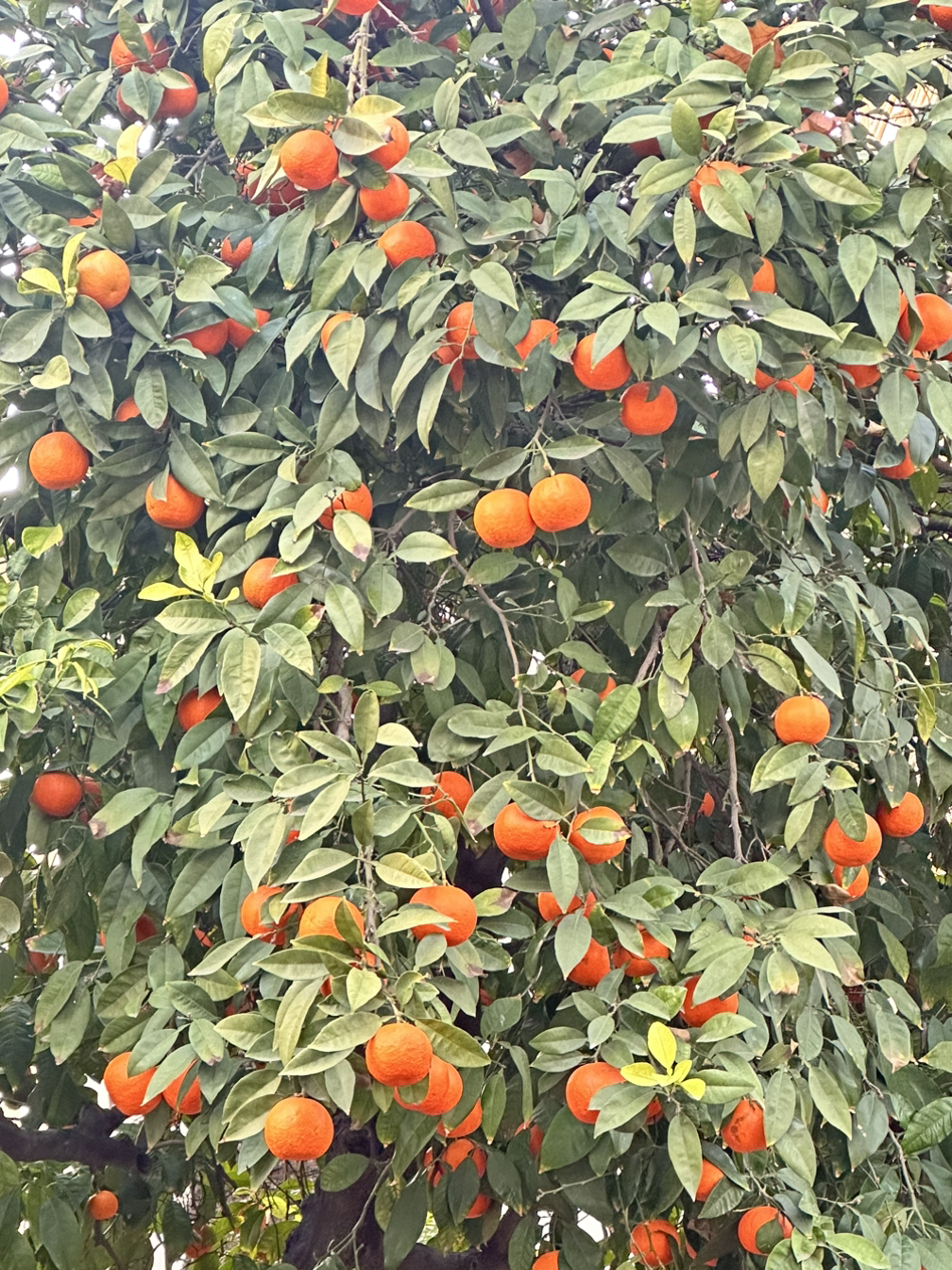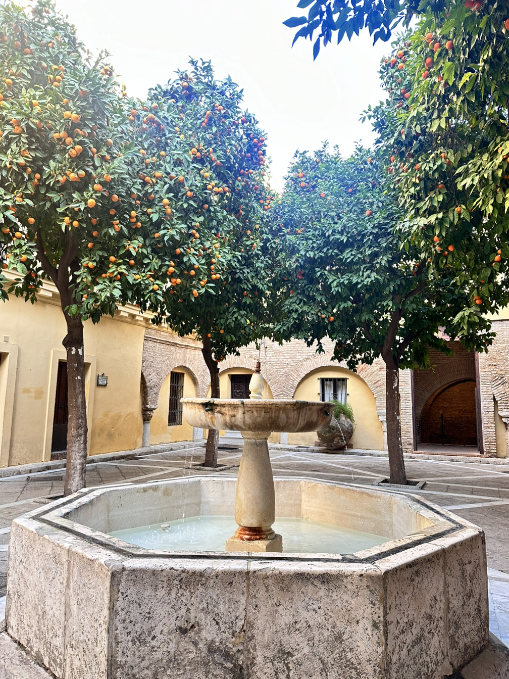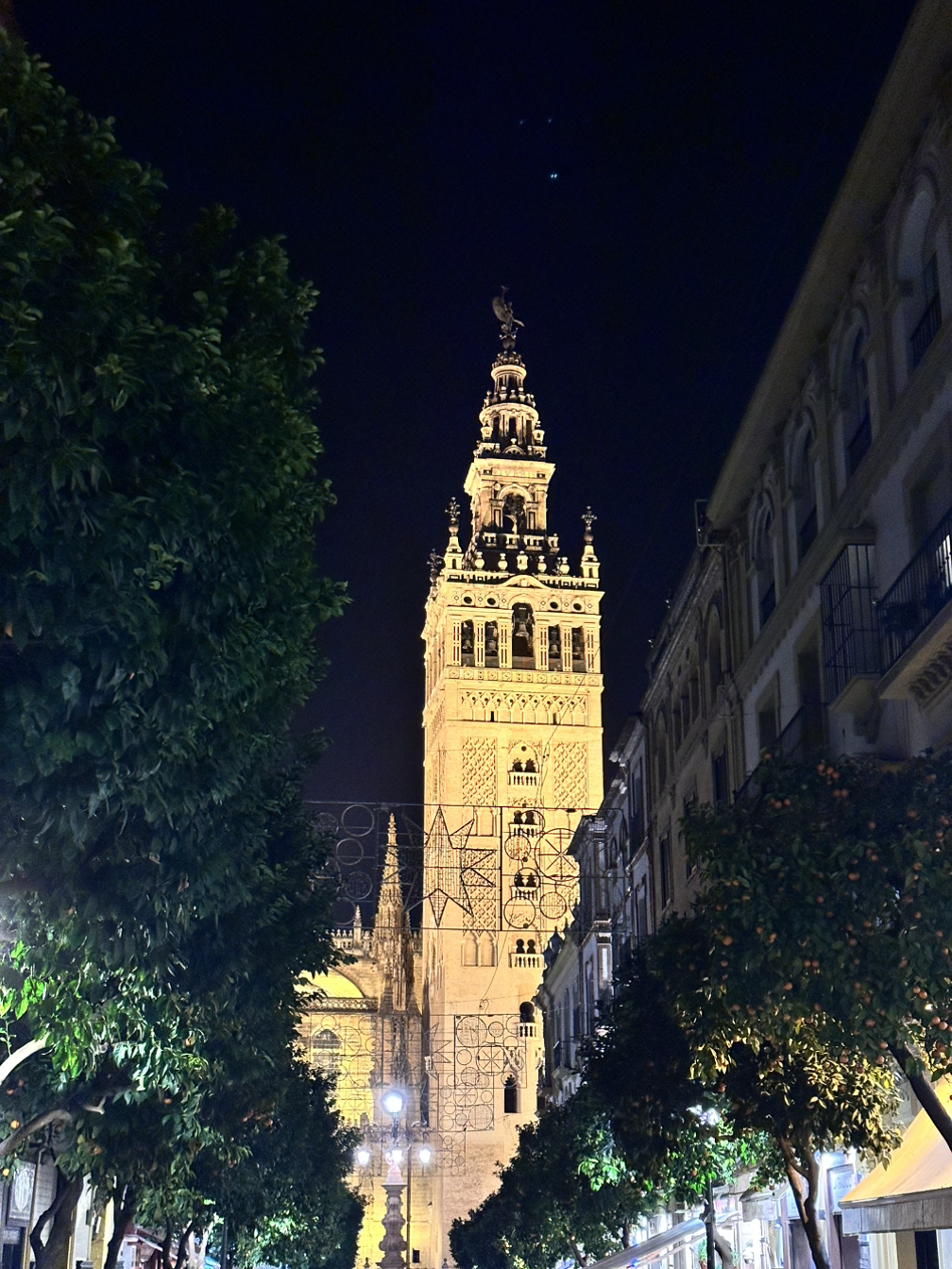 세비야 대성당은 규모도 크고 높이도 상당히 높았다. 우리는 입장하자마자 히랄다 탑부터 올라갔다. 꽤나 높이 올라가야 했지만, 무념무상하게 올라가니 생각보다 금방 정상에 도착했다. 세비야 시내가 한눈에 들어오는 전망대였는데, 빼곡한데 다채로운 건물들이 눈에 들어와서 예뻤다. 철조망이 많고 촘촘해 사진을 찍기는 어려웠지만 이틀 동안 세비야를 열심히 돌아다녔기 때문에 조금씩 추억하며 구경하기 좋았다. 4개 방면이 있어 구경을 마치고는 다시 성당으로 내려왔다. 중앙에 가장 대표적인 장식이 있었는데, 엄마가 오디오 가이드를 들으시는 동안 나는 아빠랑 그 앞에 의자에 앉아서 잠깐 쉬었다. 앉아있는 동안 주변에서 이런저런 투어 단체에서 와서 설명을 했는데, 우리 근처에서 하셔서 조금 들을 수 있었다. 확실히 가만히 앉아서 보는 것보다 내용을 알고 보니 더 신기하고 재밌었다. 여기는 콜럼버스의 무덤이 있는 성당으로도 유명한데, 역사책에서만 보던 콜럼버스의 무덤을 실제로 보니 신기했다. 가운데 있는 정원에는 오렌지 나무가 가득했는데, 푸른 하늘에 초록색 잎과 주황색 오렌지라니 정말 힐링되는 풍경이었다.