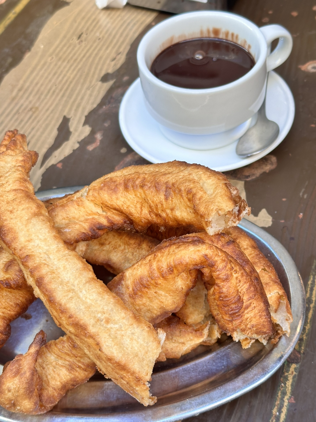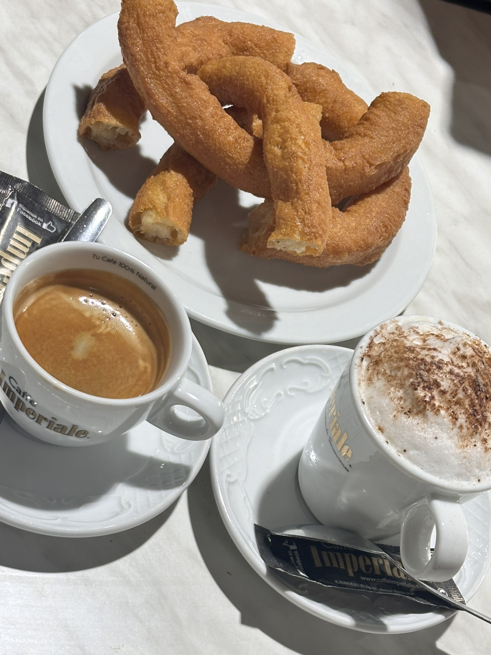 쇼핑을 하니 허기가 져서 주변에 있던 유명한 츄러스 집으로 향했다. 어제 오려다가 휴무일이라서 못 갔는데, 오늘은 다행히 열어있어서 갈 수 있었다. 가자마자 직원 분께서 “츄러스 앤 초코?”라고 물어보셔서 “Yes”라고 했더니 바로 튀긴 츄러스와 따끈한 핫초코를 주셨다. 츄러스의 비주얼은 어제 먹은 츄러스와 마찬가지로 두껍지만 공기가 많아 퐁신해 보였고, 초콜릿은 진해 보여서 기대가 되었다. 한 입 먹어보니 여태 먹은 츄러스 중 가장 맛있었다. 초콜릿 맛도 진하고 바삭 퐁신해서 정말 맛있게 먹었다. 가족들도 좋아해서 하나를 다 먹고 아쉬움에 하나를 더 주문해서 먹었다. 츄러스는 먹는 사이 생각보다 많은 시간이 소요되어 세비야 대성당 입장 시간이 빠듯해졌다. 그래서 살바도르 대성당을 다음 순서로 미루고 세비야 대성당부터 갔다.