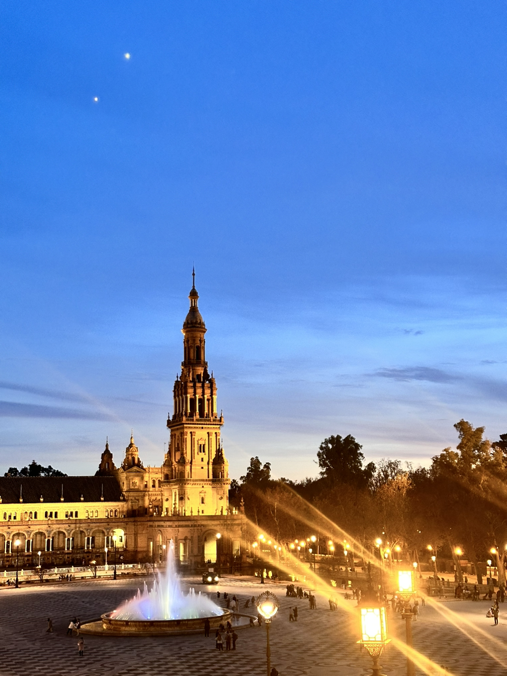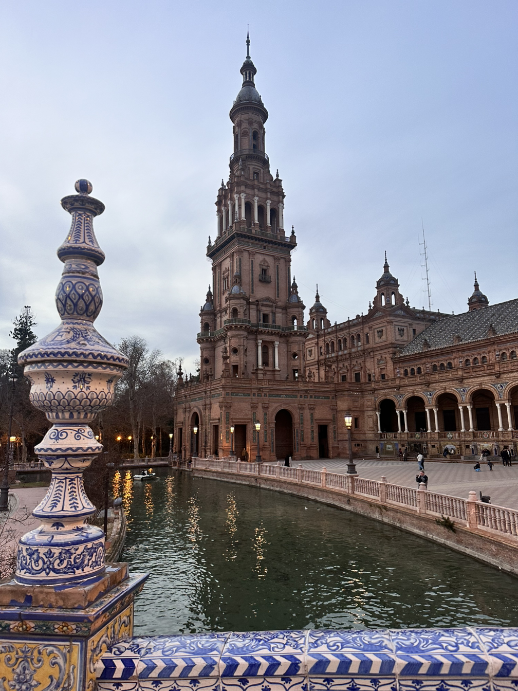 세비야를 알차게 돌아다녀 대표적인 관광지는 모두 돌아봤지만, 이대로 실내로 들어가기에는 세비야의 풍경이 아름다워 왕복 1시간 거리인 스페인 광장에 다시 가기로 했다. 가는 길에 여전히 예쁜 오렌지 나무가 우리를 반겨주었다. 그렇게 30분을 걸어 스페인 광장에 도착을 했다. 시간이 늦어져 걱정했는데, 다행히 카약이 아직 가능해서 줄은 잠깐 기다려 우리도 카약에 탑승했다. 처음에는 언니와 아빠가 노를 젓기 시작했는데, 언니의 실력이 영 좋지 않아 내가 노를 젓기 시작했다. 사진이나 영상으로는 많이 봤는데, 실제로 젓는 건 처음이라 기대되었다. 막상 시작하니 모두가 인정해 주는 숨은 재능러였다. 나도 재밌어서 새로운 적성을 찾은 것 같았다. 아빠가 장난 삼아 새우잡이 배에 보내야겠다고 말하실 정도로 언니보다도, 아빠보다도 빨리 저어 뿌듯했다. 언니와 아빠는 중간중간 교대했는데 나는 적성에 잘 맞았는지 별로 힘들지도 않아서 거의 처음부터 끝까지 계속 노를 담당했다. 딱 석양이 지는 시간에 카약을 타서 실시간으로 변하는 하늘을 바라보는 것도 행복하고 아름다웠고, 석양이 비치는 건물의 모습도 아름다웠다. 마치 윈도우 배경화면에 들어와 있는 듯한 유유자적함이었다.