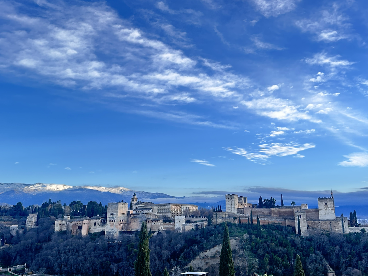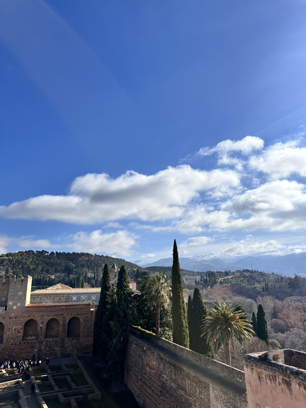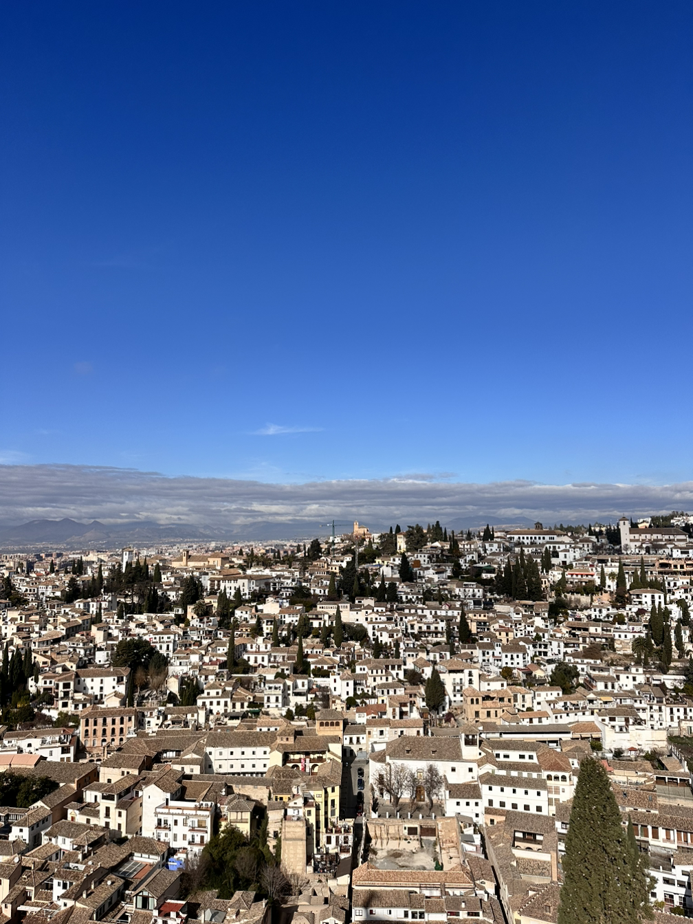 마지막으로 향한 곳은 알카사바이다. 들어가기 전에 뷰가 끝내주는 야외 카페가 있어 가봤다. 라떼를 주문해 도시 전체가 보이는 뷰포인트에서 따뜻하고 부드럽고 고소한 라떼를 마시니 행복 그 자체였다. 사진도 찍고 힐링도 하다가 마지막 목적지인 알카사바로 향했다. 알카사바는 전망대가 가장 훌륭한 곳이었는데, 도시가 한눈에 보이는 전망대도 아름다웠지만 뒤를 돌아 자연을 봤을 때가 절경이었다. 이래서 왕이 되려고 하는 건가 싶을 정도로 아름다운 알함브라 방문은 그렇게 끝이 났다.