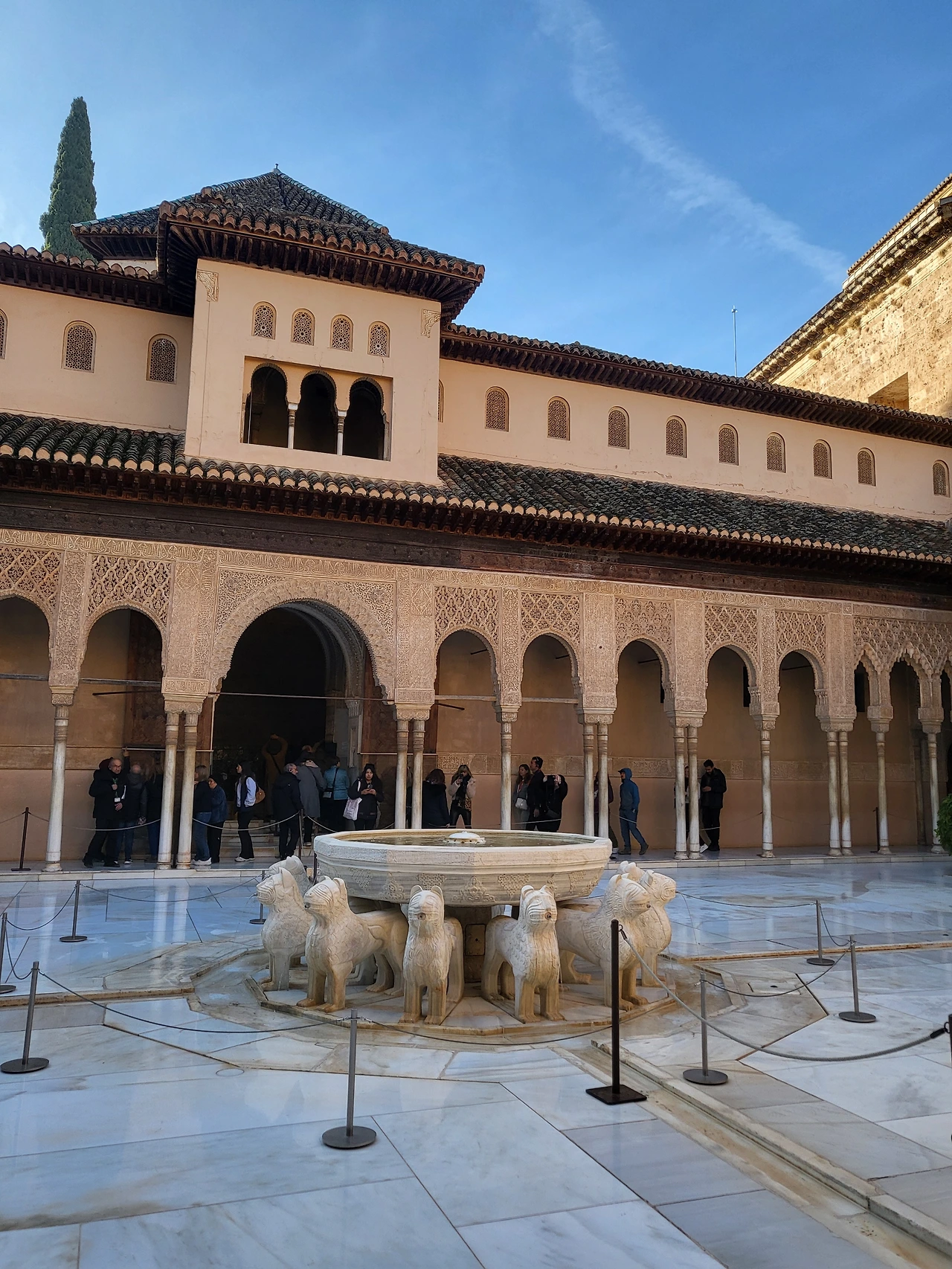 다음으로는 대망의 나스르 궁전으로 향했다. 알함브라 궁전 중 유일하게 입장 시간이 정해져 있고, 엄격하게 검사한다고 해서 기대가 되었다. 가이드님 설명을 같이 들으며 갔는데, 그라나다의 역사뿐만 아니라 이슬람교의 역사, 스페인의 국기 등 배경 지식까지 알 수 있어 흥미롭고 유익했다. 오디오 가이드를 하기 정말 잘한 것 같았다. 잠깐의 줄을 기다리고 입장해 나스르 궁전 투어가 시작되었다.