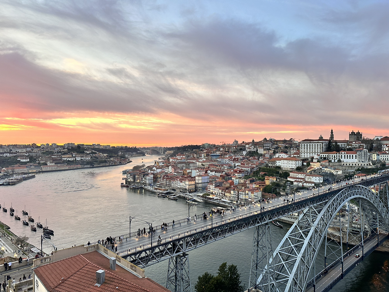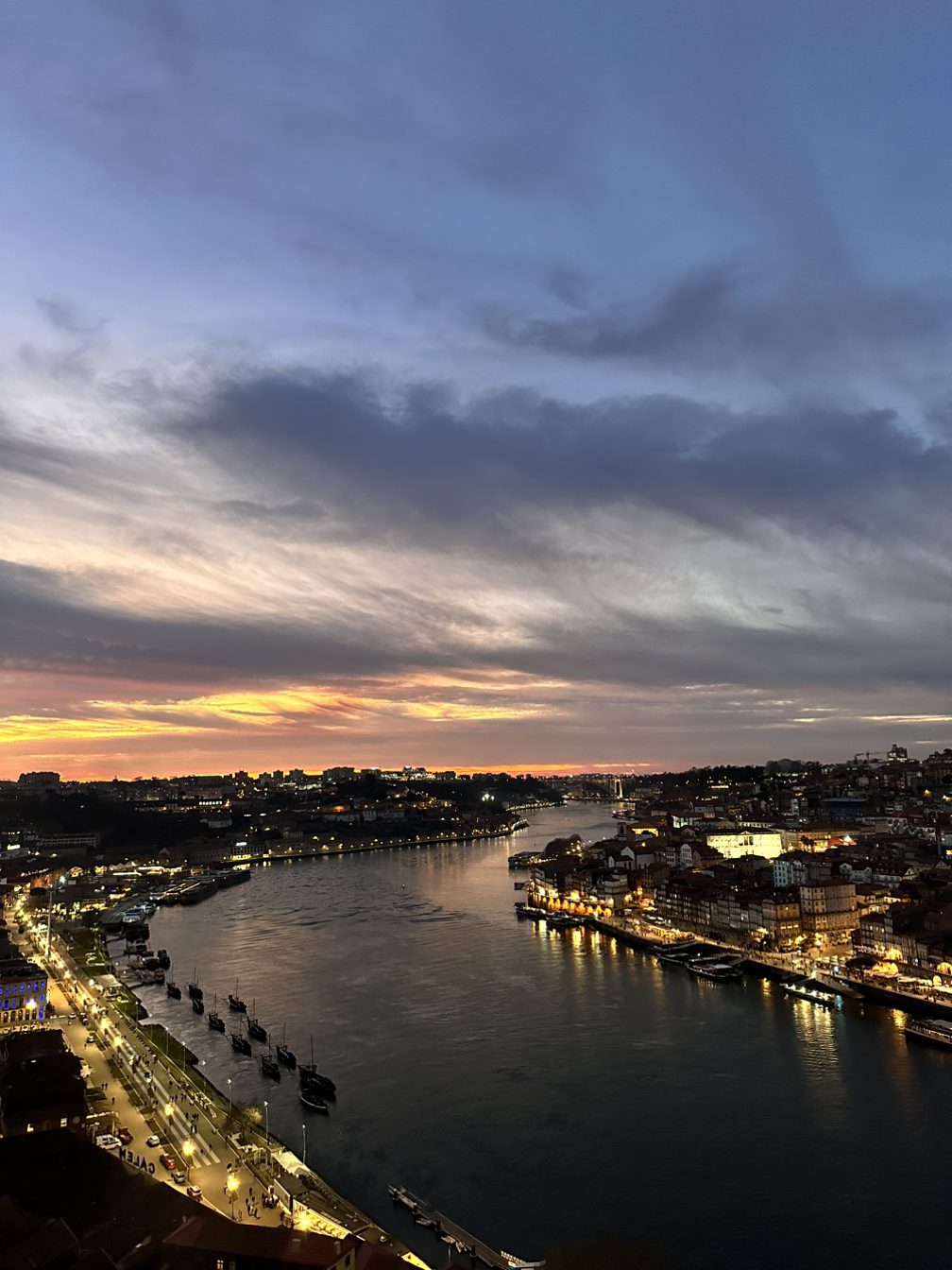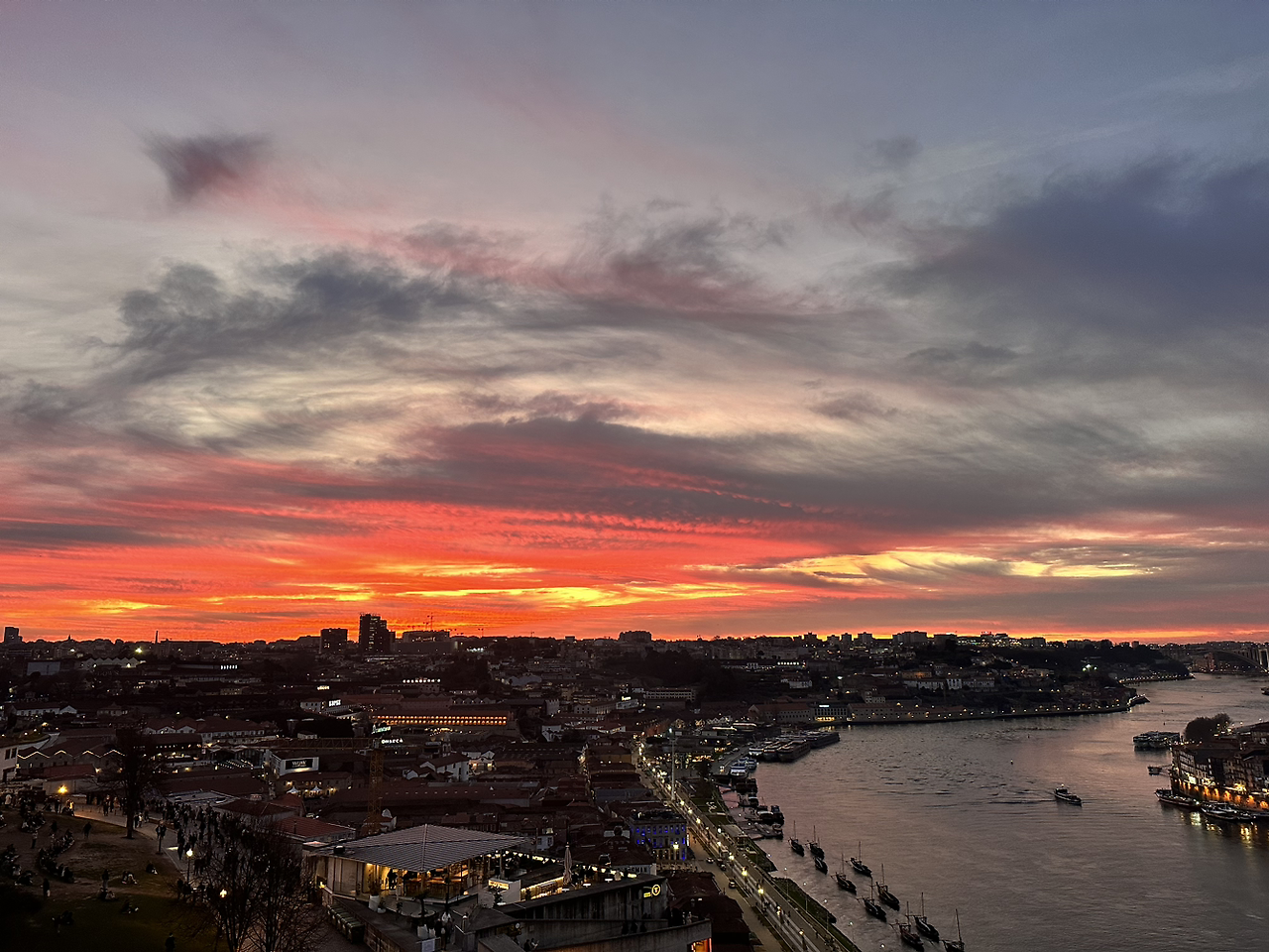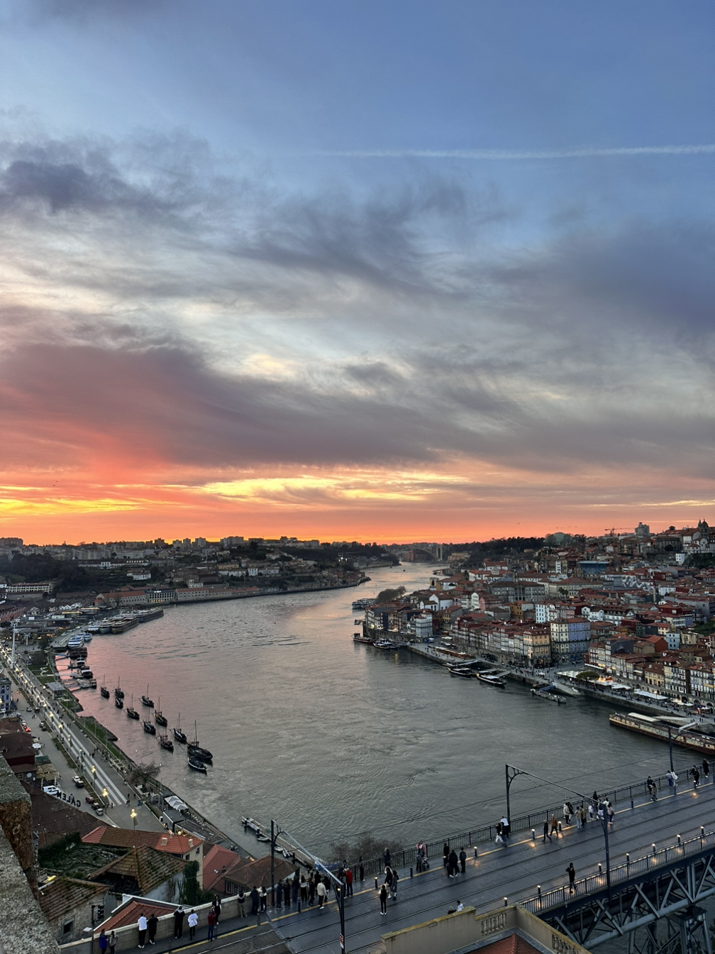 시내에서 또 25분 정도 걸어 전망대에 올랐다. 어제의 야경도 아름다웠는데, 오늘의 야경도 황홀 그 자체였다. 다리와 마을의 야경이 한눈에 돌아오고, 오른쪽부터 해가 지는지 오른쪽부터 어두워지고 왼쪽은 붉게 타오르는데 신기했다. 인생 가장 아름다운 일몰, 그리고 앞으로의 삶에 있어서도 가장 아름다울 일몰이었다. 언니랑 이런저런 진지한 얘기도 하면서 한참을 감상하다 동네 마트에 들러 과일과 맥주를 사서 귀가했다. 돌아와 저녁과 간단한 술도 마시고 씻고 이제 잠에 들려고 한다. 매일, 매 순간이 리즈인 포르투에서의 하루였다.