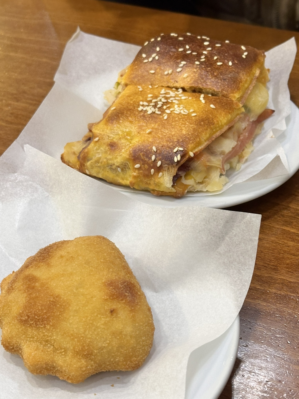전망대도 마지막으로 보고 호텔 근처로 돌아와 아점을 먹었다. 샌드위치와 빵의 중간인 무언가와 고로케 같은 걸 먹었는데, 빵은 피자빵 맛이 났고 고로케는 새우 맛이었는데, 차가워서 아쉬웠지만 맛있게 먹었다.