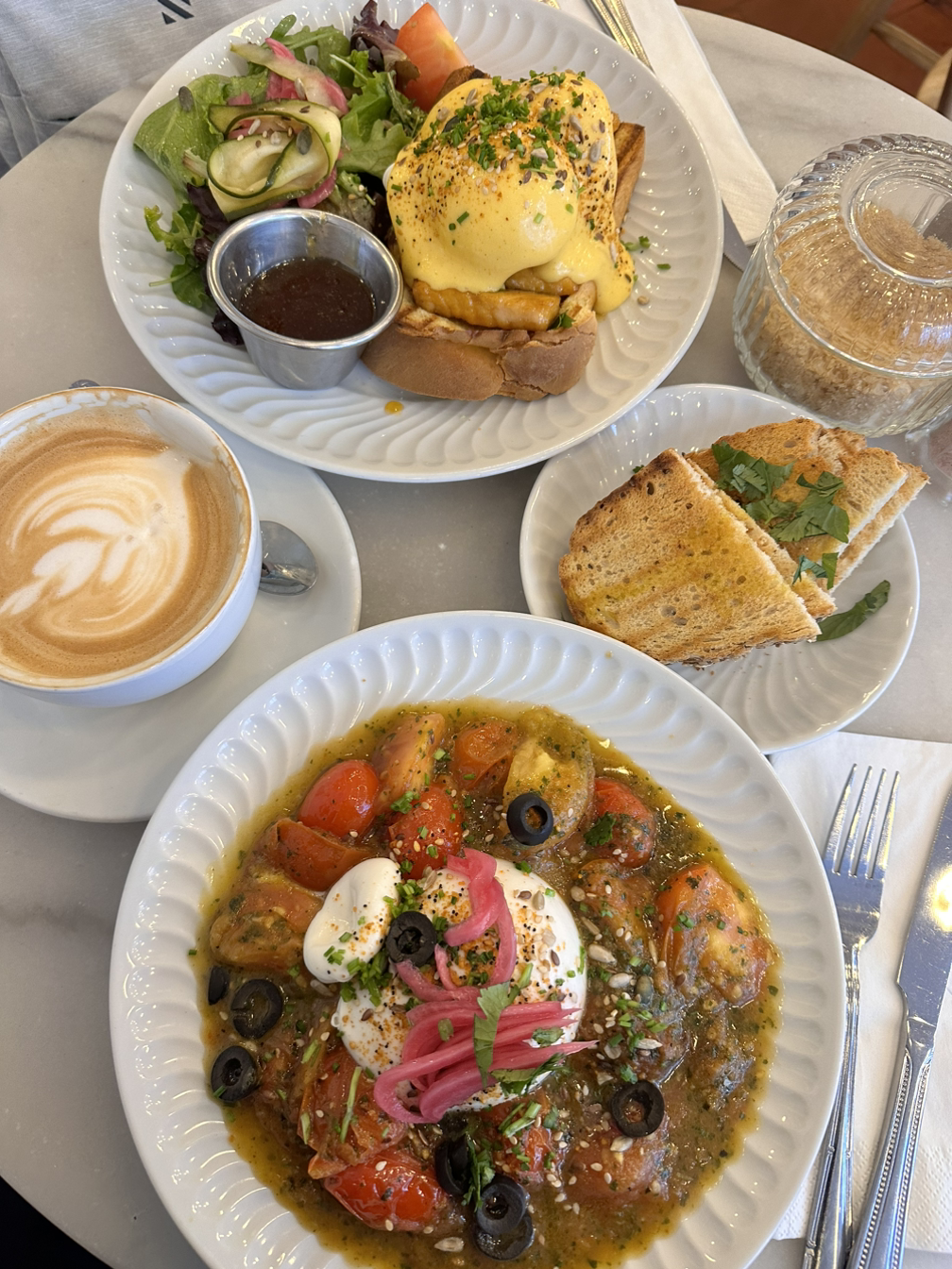 리스본, 그리고 포르투갈에서의 마지막 날이다. 오늘은 파리로 가는 비행기를 타야 해서 아침에 일찍 일어나 마지막 브런치를 즐기러 갔다. 근처에 리뷰가 좋은 브런치 집이 있어 트램을 타고 갔다. 연어 에그 베네딕트와 토마토와 부라타 치즈 메뉴를 주문하고 라떼를 주문했다. 라떼부터 나왔는데, 고소하고 부드러워서 맛있었다. 이어서 나온 부라타 치즈 요리는 특이하게 토마토가 덩어리째 들어간 토마토 스튜 같은 것에 부라타 치즈가 올라간 요리를 빵과 먹는 것이었는데, 부라타 치즈를 따뜻하게 먹기는 처음이라 새로웠다. 토마토에 부라타 치즈 그리고 사워도우의 조합은 말해 뭐 해 맛있었다. 연어 에그 베네딕트는 예상과 다르게 살짝 구운 연어였는데, 전에 먹은 연어 구이가 너무 맛있어서인지 특별한 맛은 아니었다. 딱 무난하게 맛있는 브런치였다. (한국에서부터 브런치를 하도 많이 먹어 기준이 높아진 탓도 있는 것 같다...)