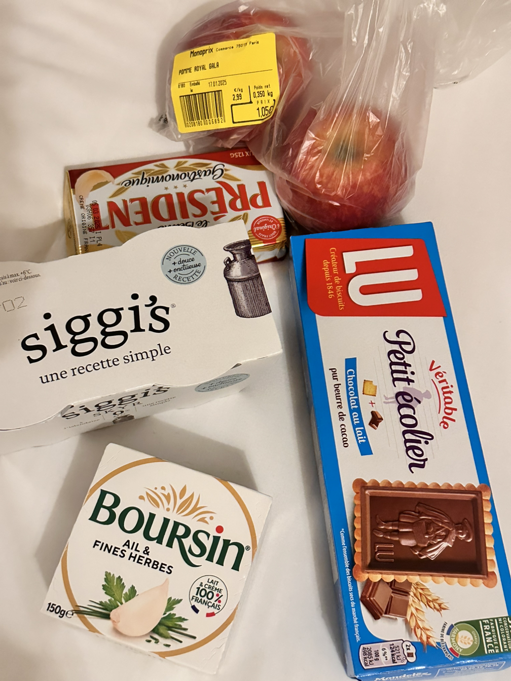 호텔까지는 걸어왔는데, 오는 길에 마그넷도 하나 사서 걸어왔다. 호텔로 돌아와 마저 짐을 챙기고는 우버를 잡아 타고 공항으로 향했다. 공항에 사람이 별로 없어서 보안 검색까지 호다닥 마치고 면세 구역에서 사진 정리도 하면서 쉬었다. 2시간 30분 정도의 비행을 마치고 드디어 파리에 도착했다. 우리는 라이언 에어를 타서 보베 공항에 도착했는데, 도착하자마자 공항 셔틀을 타고 시내와 가까운 메트로 역까지 도착했다. 역에 와서는 지하철을 탔는데, 24분 거리를 와야 되는데 계속 멈추더니 결국 기차 고장인지 승객들이 전부 내리고 다음 지하철을 타고 오는 바람에 거의 1시간이 걸렸다. 그러고 한 번을 더 갈아타서 8시 넘어서야 호텔에 도착할 수 있었다. 리스본 공항에서부터 파리 마트 쇼핑을 잔뜩 기대한 우리는 마트부터 달려가 초콜릿 비스킷이랑 크림치즈, 화이트 와인 그리고 사과를 사서 돌아왔다.
