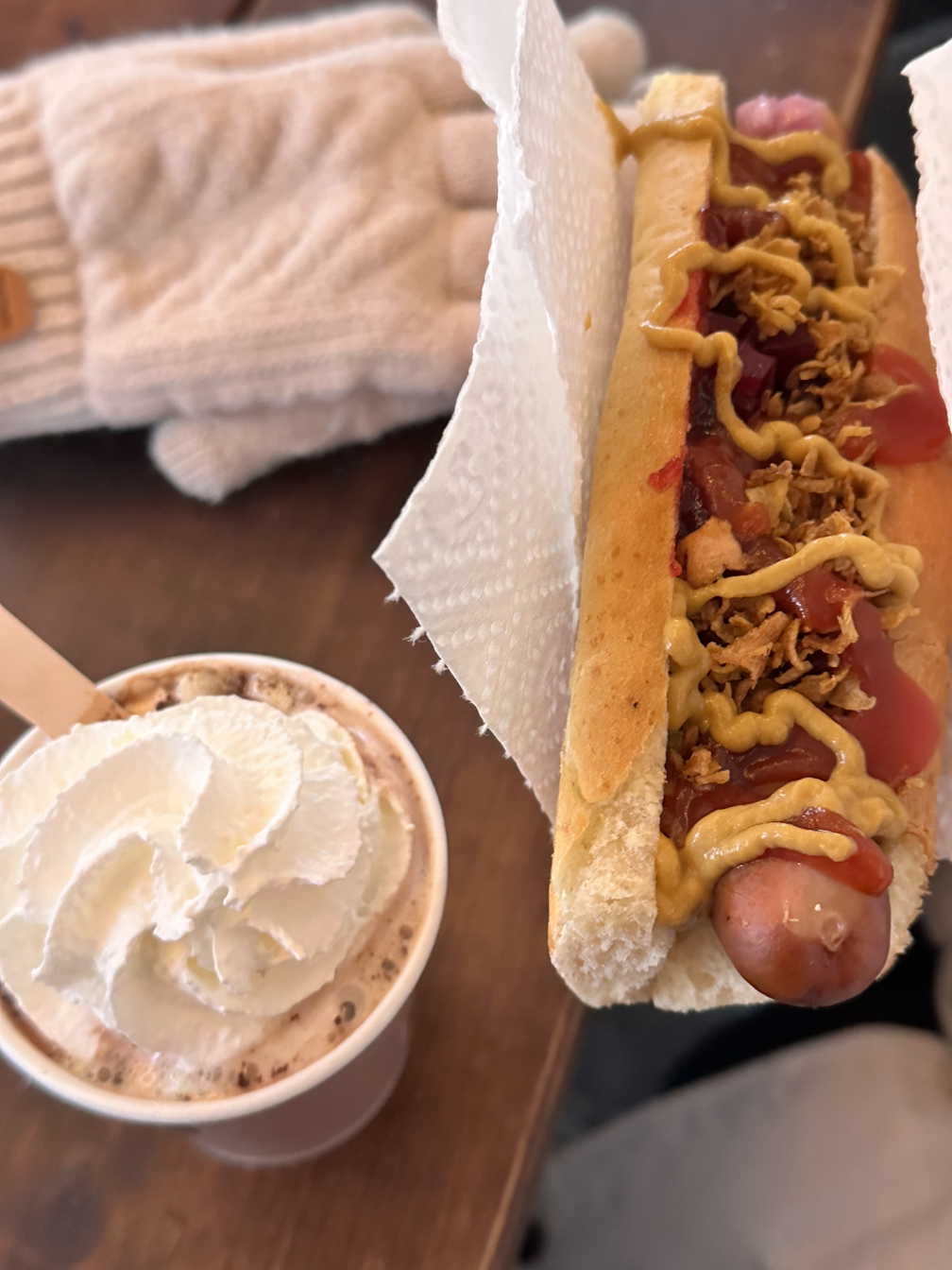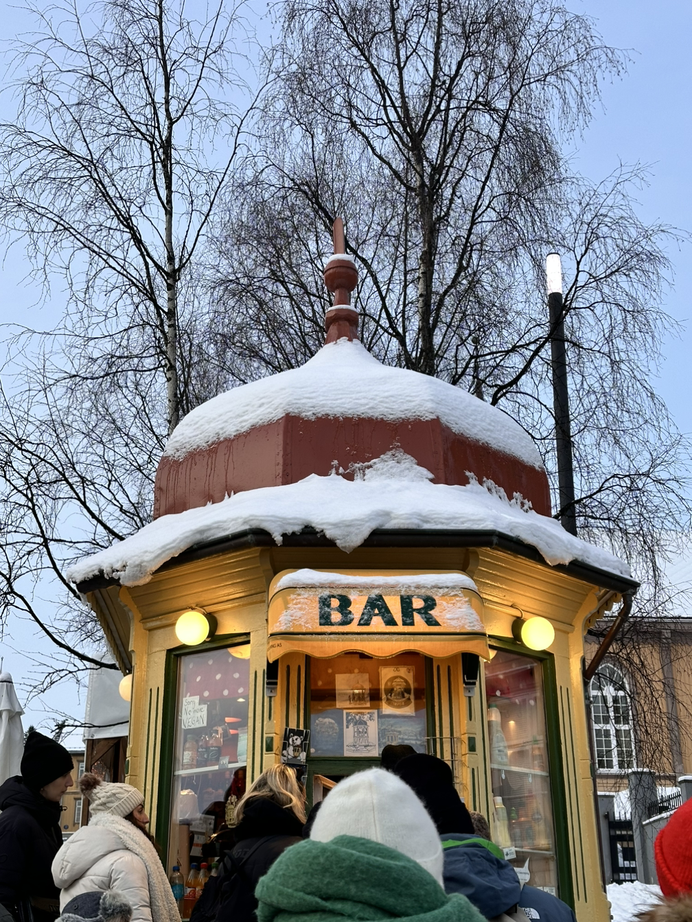 다음 일정은 세상에서 가장 작은 바이다. 한국에서도 예능 프로그램에 나와 유명해진 바인데, 외국인들에게도 인기가 많은지 오픈 시간인 12시쯤 갔는데도 줄이 있었다. 한 10분 정도 기다리니 우리 차례가 되어 가장 유명한 beef and rain deer 핫도그와 코코아를 주문했다. 핫도그 위에 다양한 토핑이 올라가 기대가 되었고, 코코아도 위에 마시멜로랑 휘핑크림을 가득 얹어주셔 기대가 되었다. 핫도그부터 한 입 먹어보니 재료들이 조화롭고 각각의 맛이 느껴지면서 조화로워서 정말 맛있었다. 코코아도 예술의 맛이었는데, 위에 올라간 휘핑크림은 부드럽고, 마시멜로가 달달한데 초코 맛이 진해서 너무 달지 않은 완벽한 코코아였다. 세상에서 가장 작은 바라는 소문을 듣고 맛에 대한 기대는 없었는데, 이렇게 맛있어서 행복했다.