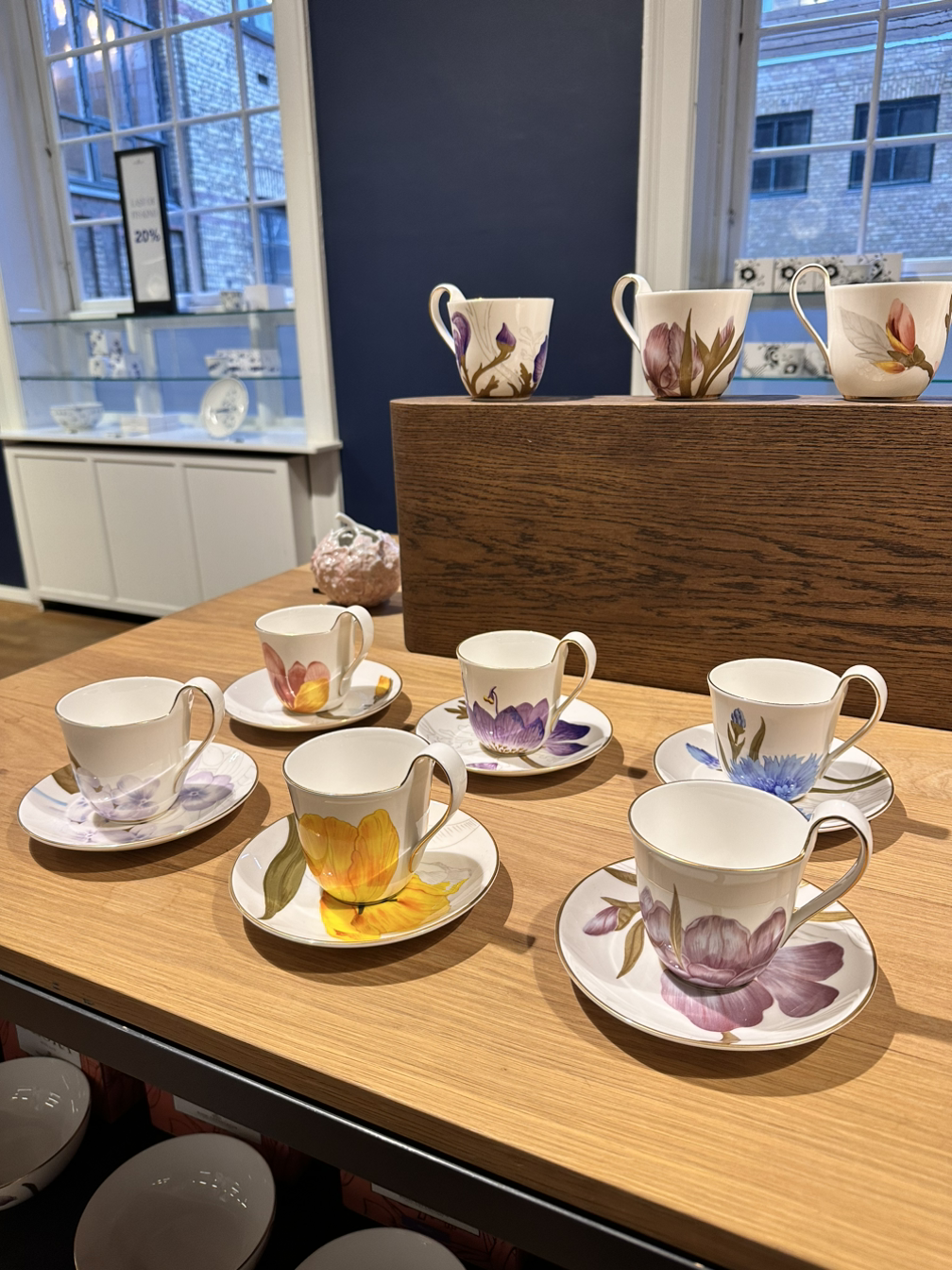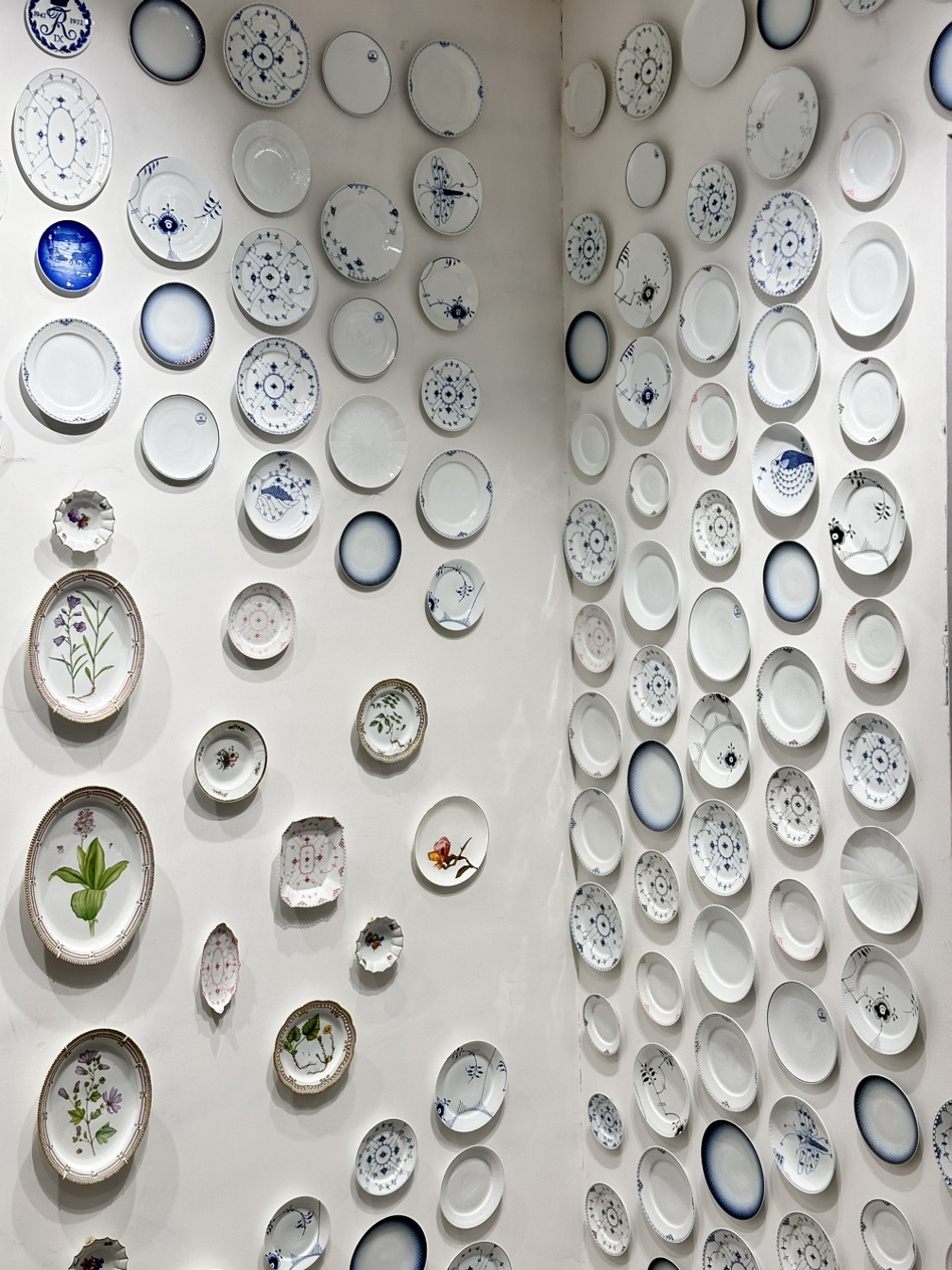 다음 구경은 로얄 코펜하겐이다. 한국에서도 유명한 브랜드인데, ’ 코펜하겐에 왔으니 로얄 코펜하겐은 들러야지 ‘라는 아주 단순한 생각으로 가게 되었다. 여기는 매장이 아니라 잔시장 수준으로 디스플레이도, 인테리어도 훌륭했다. 라인별로 깔끔하게 정리되어 있고, 한쪽 벽면에 가득 붙여진 접기까지 아이코닉했다. 2층으로 올라가니 테이블 위에 한 세트가 놓아져 있는 구성이 있었는데, 나중에 인테리어를 이렇게 하고 싶을 정도로 마음에 들었다. 가장 기억에 남는 건 1층에 있던 고릴라 모양이다. 고릴라 작품을 보고 신기해서 언니랑 얘기를 하고 있었는데, 직원분께서 갑자기 오셔서 신기하지?라고 물어보셨다. 의미를 여쭤보니 그냥 매년 하나씩 나오는 동물이라고 하셨다. 그러고는 잠깐 기다려보라고 하시더니 위층에 올라가셔서 박스 2개를 카트에 담아 돌아오셨다. 놀랍게도 크기별 고릴라를 보여주셨는데, 전시된 중간 사이즈 이외에도 직은 사이즈와 큰 사이즈가 있어 보여주러 가져와주신 것이다. 기다리는 동안 로열 코펜하겐에서 고릴라를 기다리는 우리가 웃겨서 기억에 남는다. 고릴라와 함께였지만 감성 가득한 로열 코펜하겐 구경이었다.