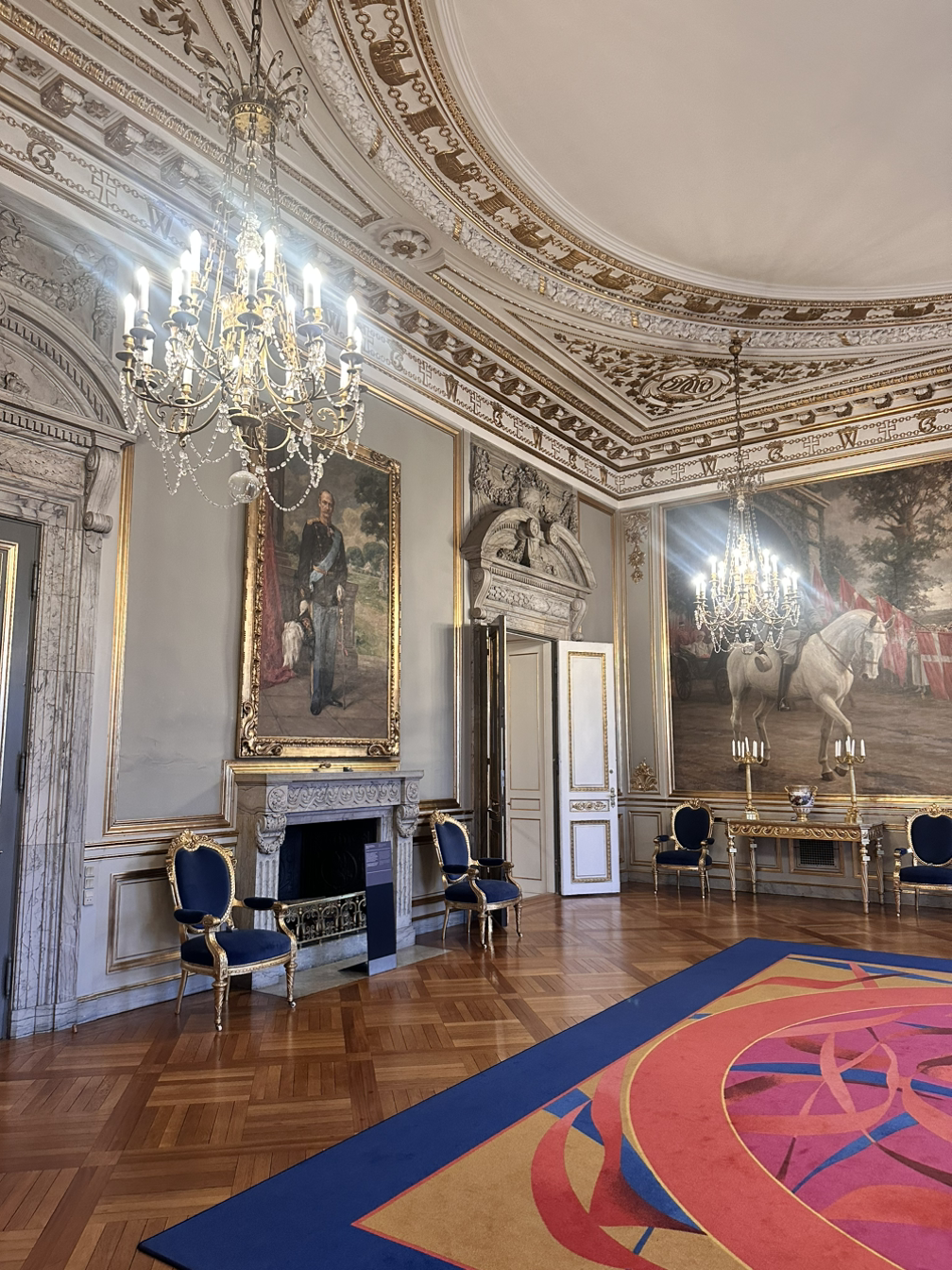 코펜하겐 카드의 시간이 얼마 남지 않아 마지막 관광지인 크리스티안보르 궁전으로 향했다. 작년에 이루어진 왕위 즉위식이 이루어진 곳으로, 대부분의 왕실 행사가 이루어지는 메인 궁전이다. 로젠부르 궁전이 기대보디 소박해서 큰 기대 없이 갔는데, 왕실 행사가 열리는 곳이라서 그런지 확실히 화려함이 달랐다. 메인 홀도 웅장했고, 다른 방들도 규모부터 달랐다. 현재 주거하지 않는 곳이라서 그런지 왕실의 생활보다는 왕실의 행사를 더 엿볼 수 있는 곳이었다. 우리나라에는 없는 문화라서 그런지 신기하고 왕이란 어떤 존재일지 궁금해졌다.