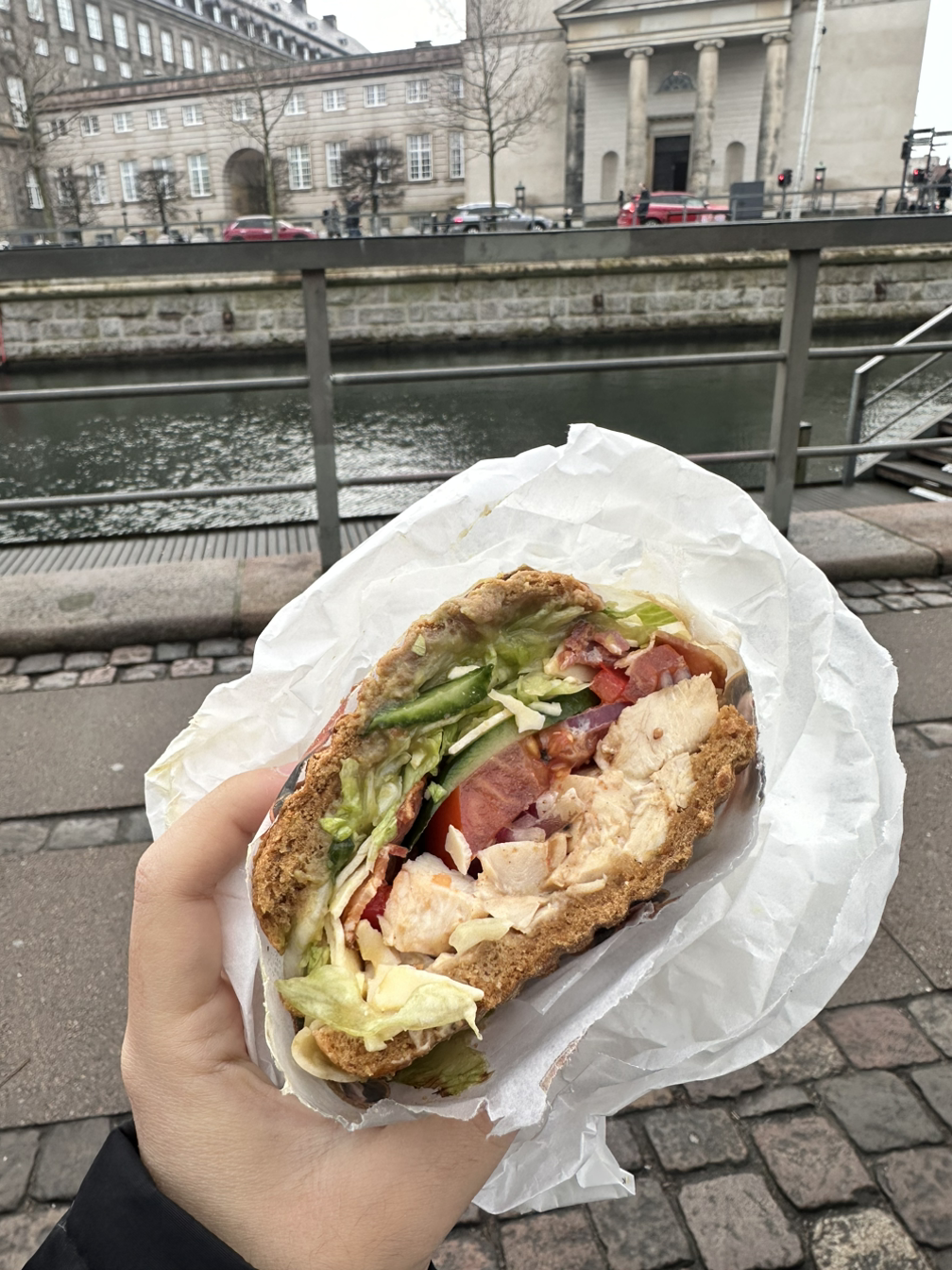 코펜하겐을 즐기는 처음이자 마지막 하루이다. 코펜하겐에 생각보다 볼 게 많은데 하루밖에 못 있어서 오늘의 계획을 아주 야무지게 세워놨다. 코펜하겐은 가게도 관광지도 대체로 9-10시에 열어 5-6시면 문을 닫기 때문에, 그 사이에 호다닥 관광을 하는 계획을 세웠다. 우리의 계획은 9시에 시작했다. 코펜하겐의 살벌한 물가 때문에 밖에서 외식하기는 부담스러워 미리 샌드위치를 테이크아웃했다. 호텔 근처에 있는 유명한 샌드위치 집이었는데, 우리는 bbq 치킨에 치즈가 들어간 샌드위치를 주문했다. 주문 즉시 만들어주셔서 10분 정도 기다렸는데, 샌드위치를 받고는 크기와 무게에 놀랐다. 벽돌 같은 무게에 가방에 겨우 들어가는 어마어마한 크기였다.