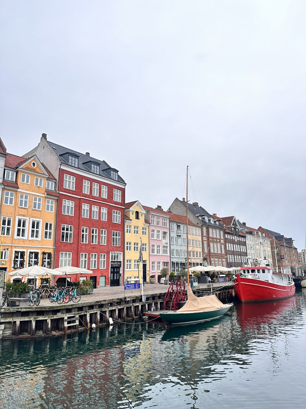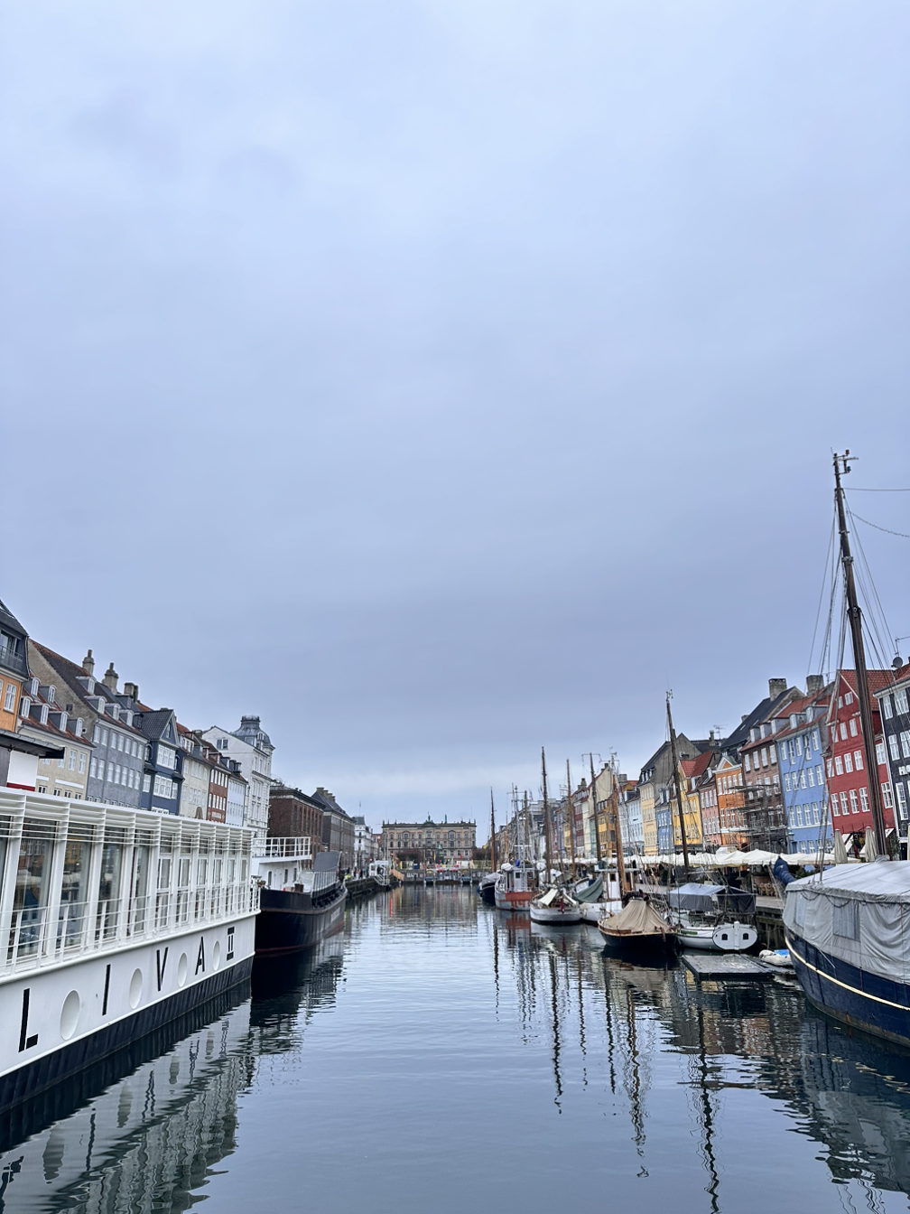 샌드위치를 든든하게 챙기고 코펜하겐의 대표 명소인 뉘하운부터 향했다. 뉘하운은 New Harbor라는 뜻으로, 비교적 새로운 항구라고 한다. 어제 가서 야경을 봤지만, 알록달록한 색감을 보기 위해서는 아침에 가야 될 것 같아 첫 코스로 정했다. 버스를 타고 가보니 감각적이면서 따뜻한 뉘하운의 거리가 한눈에 들어왔다. 색이 다채로운데 차갑지 않고 조화로워서 거리 전체의 분위기가 살아나는 듯했다. 양쪽의 분위기가 달랐는데, 한쪽에는 배가 많이 있어 오히려 관광지 같지 않고 그 도시 자체의 분위기가 더 느껴졌다.