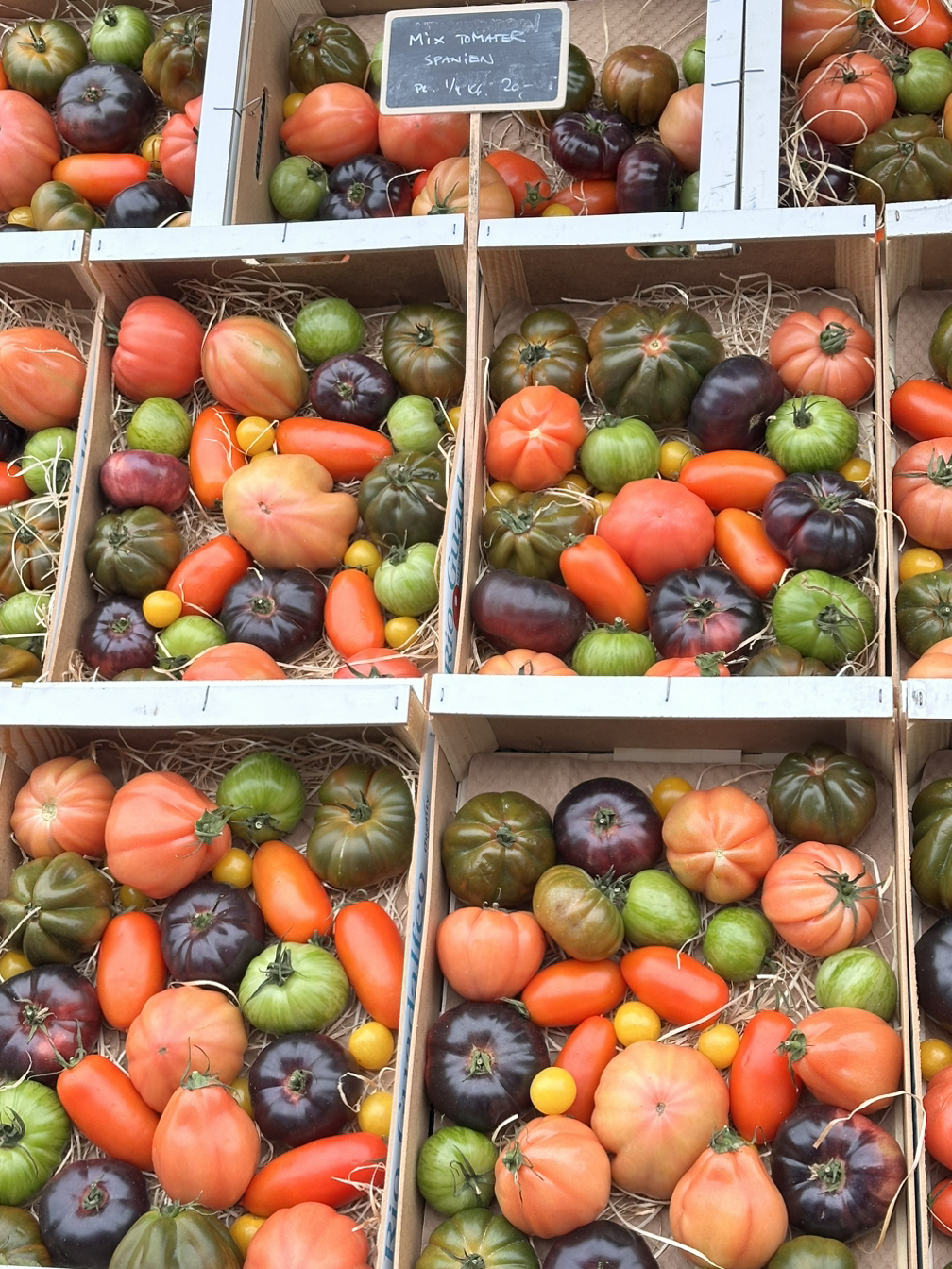 궁전 구경을 하고 근처에 있는 푸드마켓으로 향했다. 푸드마켓은 육류나 치즈, 해산물처럼 식재료도 팔고 있었고 음식도 판매하고 있었다. 작은 오픈 샌드위치 하나에 만오천 원인 살벌한 가격에 놀랐지만, 연어나 고기류 전반의 퀄리티가 좋아 보여 요리를 못하는 게 아쉬웠다. 시장이 생각보다 작아 호로록 구경하고 밖으로 나왔다. 밖에는 과일 판매를 하고 있었는데, 다양한 종류의 토마토 세트가 눈에 들어왔다. 모양과 크기가 다양한 토마토를 너무나도 예쁘게 포장해 놓은 모습이 덴마크스럽다는 생각이 들었다.