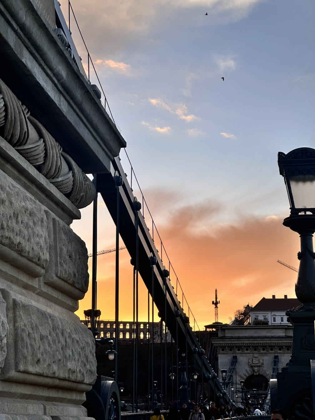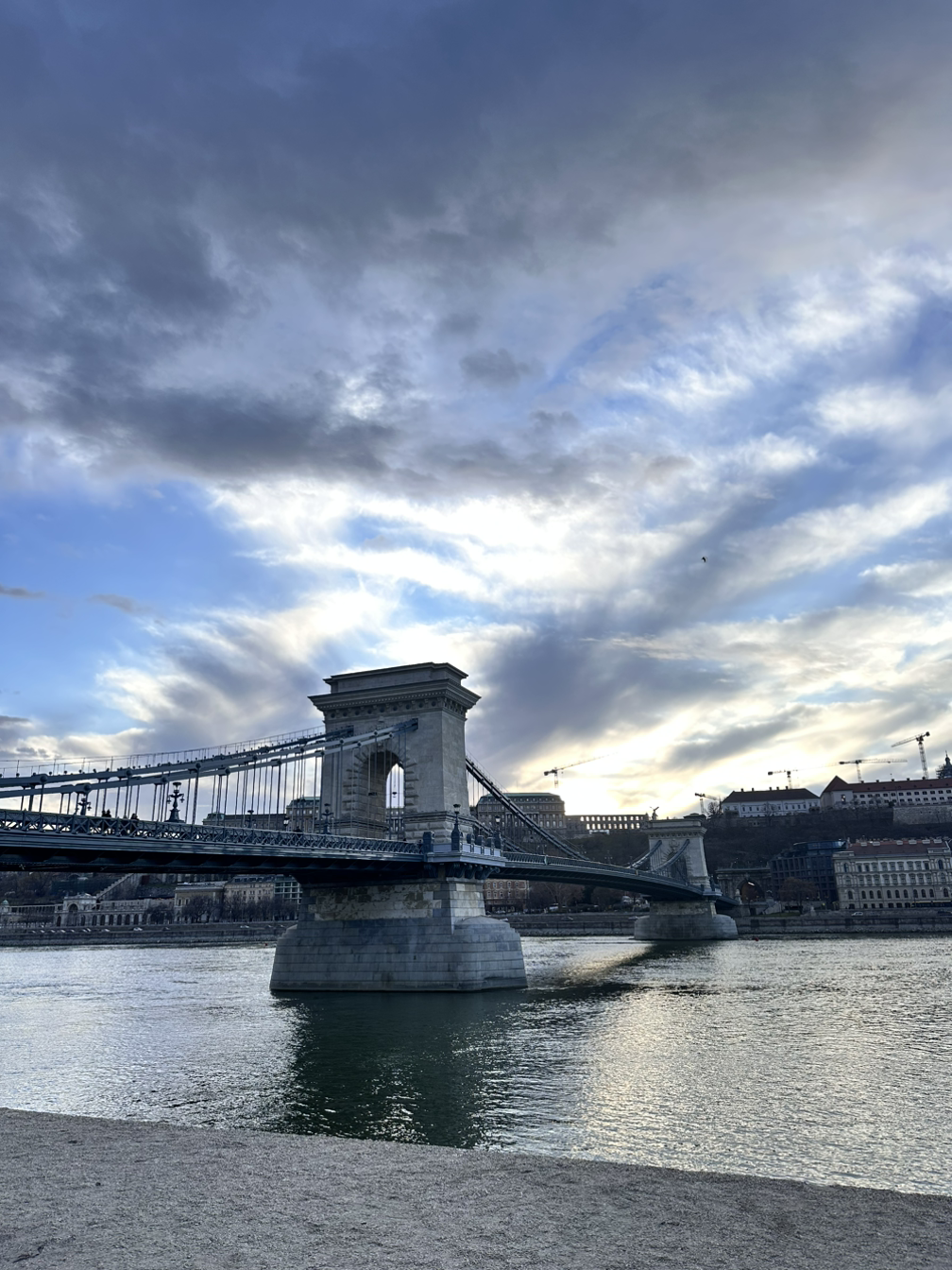 세체니 다리는 헝가리의 메인 다리 중 하나로, 부다 지역과 페스트 지역을 잇는 최초의 다리라고 한다. 야경이 아름다워 유명하기도 한데, 우리는 다뉴브 강의 전경을 보고 싶어서 미리 가봤다. 가서 사진도 찍고 벤치에서 잠깐 쉬다가 다리도 한 번 건너갔다 오니 해가 지기 시작했다. 붉은 태양이 구름 뒤에 가려져 잘 보이지는 않았지만, 붉은색으로 물들어가는 하늘이 아음다웠다.
