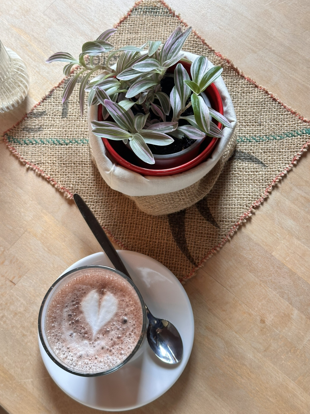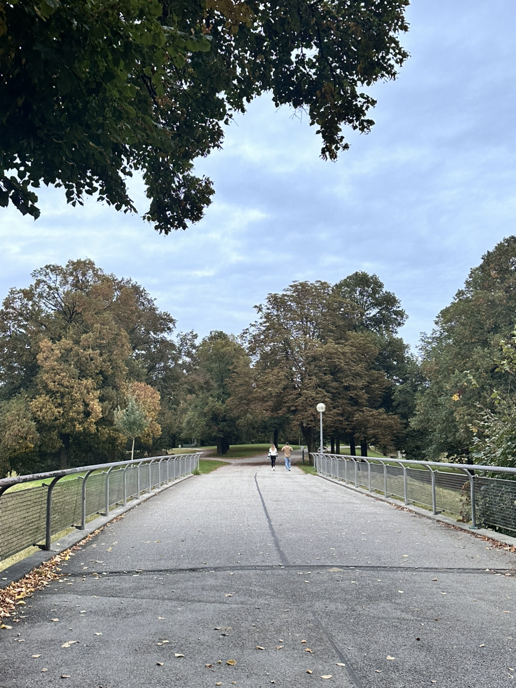 다음 목적지는 호텔 옆에 있는 큰 호수였다. Feldmochinger See라는 이름의 호수였는데, 내가 머무는 호텔 주변의 유일한 관광 명소였다. 가는 길에 예쁜 꽃밭과 옥수수밭이 펼쳐졌다. 평화로운 마을에서 자연을 바라보며 아침 산책을 하니까 유럽에 와있는 게 실감이 나기 시작했다. 나는 한국에서도 사람이 정말 많고 고층 건물이 빼곡한 동네에 살았기 때문인지 이렇게 ‘여유’라는 단어를 온전히 느낄 수 있는 동네에 와있는 게 좋았다. 밭을 지나고 숲길을 지나 도착한 호수는 내 예상보다 컸다. 잠깐 걸어 다니다 가방이 무거워서 챙겨 온 돗자리를 펴고 앉았다. 호숫가에 앉아서 풍경을 바라보며 물멍도 때리고, ebook으로 책도 읽었다. 사람이 없어서 혼자만의 여유로운 낮 시간을 보내려고 했으나 날씨가 너무 추웠다. 얼마 전까지 30도를 찍은 한국에 있던 나는 적응할 수 없는 추위와 바람이 몰아쳤고, 나는 황급히 카페로 도망을 왔다. 주변에 있는 유일한 카페였던 Schneid-Kaffee Kaffeerosterei Specialty Coffe라는 카페이다. 따뜻한 라떼 한 잔을 시켜 마시면서 걱정하는 가족 친구들에게 연락도 하고 글도 써본다.