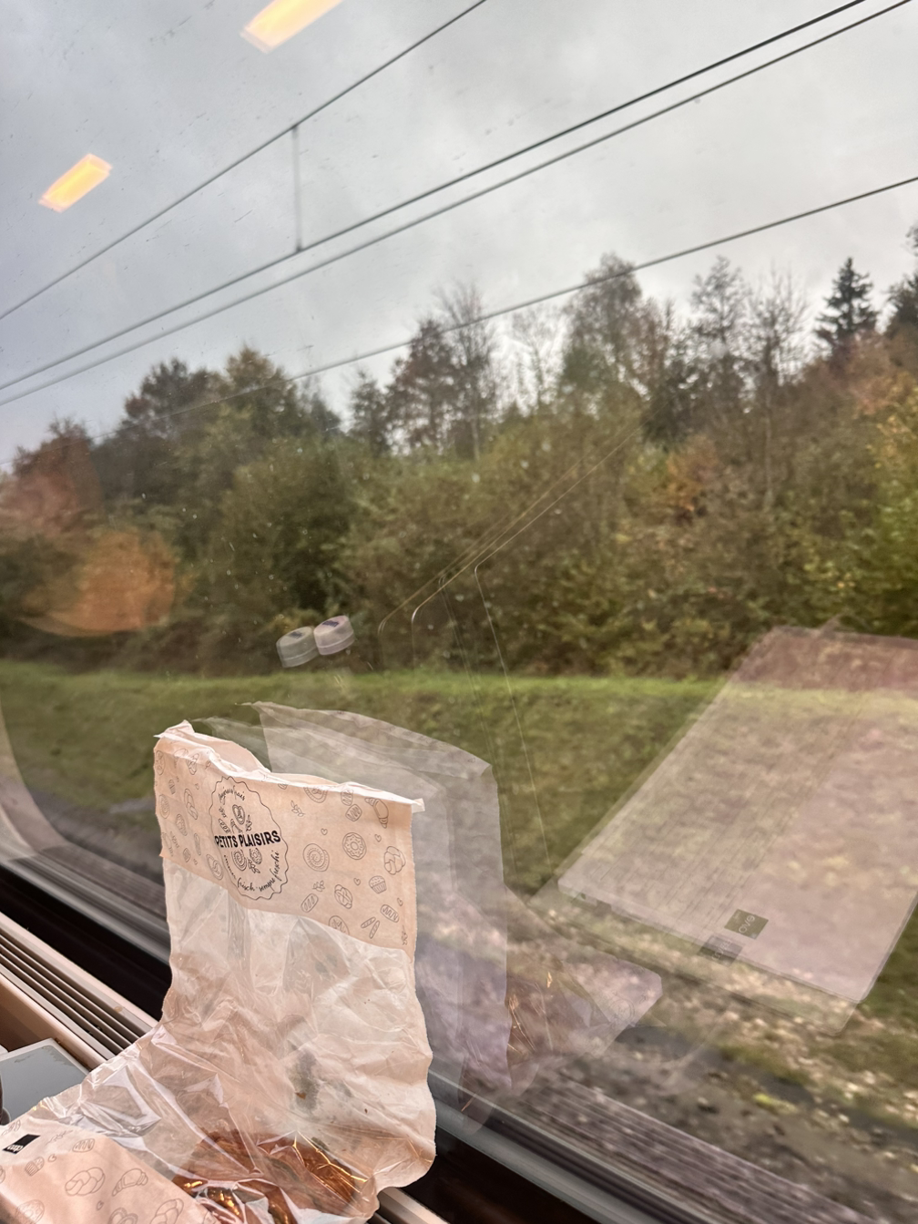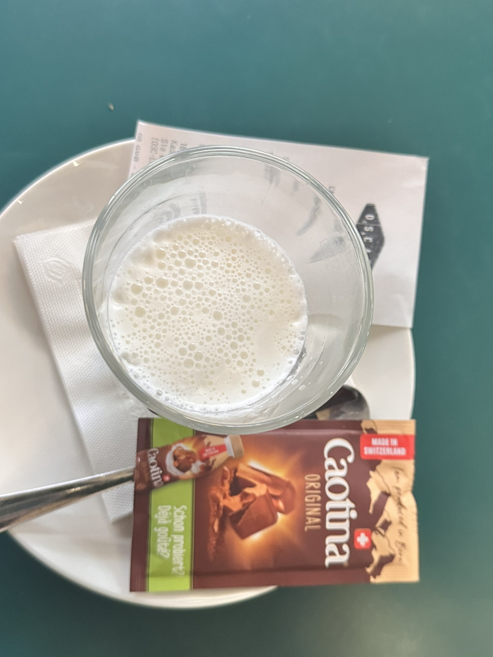 호스텔에서 짐을 정리해서 캐리어를 가지고 나왔다. 캐리어를 끌고 돌 가득한 길을 걸으려니 힘들어 강가에 있는 벤치로 향했다. 벤치에 앉아 멍하니 앉아있고 노래도 들으니 힐링이 되었다. 낚시를 하시는 아저씨도 구경하고 오리도 구경하고 있었는데, 비가 한 두 방울 떨어지기 시작했다. 기차역에 봐둔 카페가 있어서 카페로 가 코코아를 주문했다. S 사이즈를 주문하긴 했지만, 작은 컵에 반을 채워주는 건 예상 못했고... 코코아 가루를 따로 주는 것도 예상은 못했지만... 우유가 맛있고 코코아도 맛있어서 금세 기분이 좋아졌다. 인터라켄에서 우유 많이 먹어야겠다는 생각을 가지고 유튜브도 보면서 쉬었다. 그러다가 친구도 만나서 기차를 타러 왔다. 기차 밖으로 보이는 풍경이 아름답다. 지금은 초원을 지나고 있는데, 녹색 풀과 나무들, 그리고 구름 가득한 풍경이 예쁘고 앞에서 과제하다가 자고 있는 친구가 귀엽다.