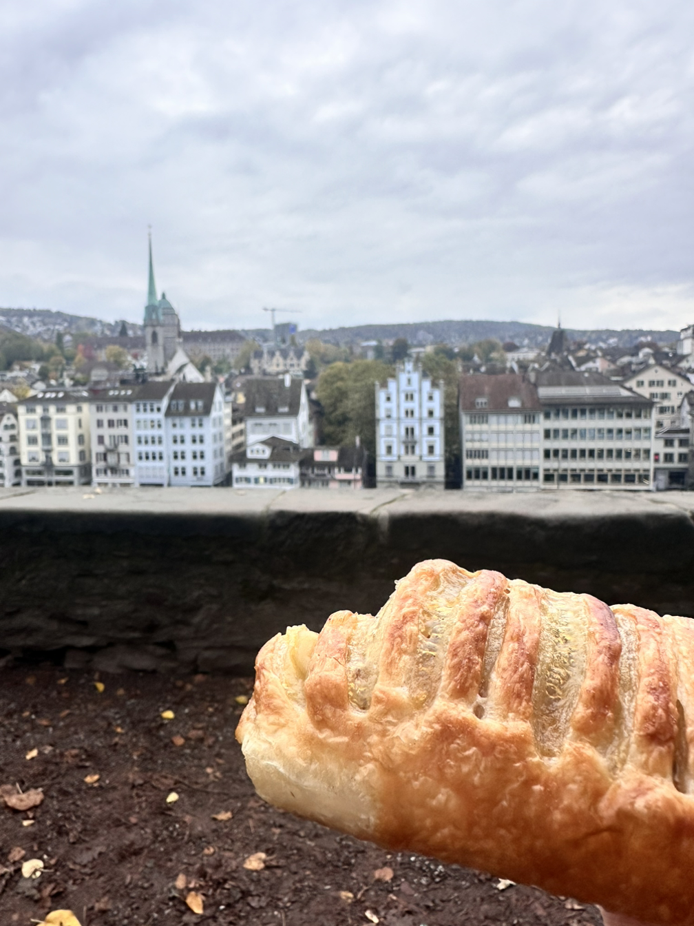 취리히에서의 마지막 오전이다. 아침에 일어나 짐 정리를 다 해놓고, 산책 삼아 coop으로 향했다. coop에서 친구와 기차에서 먹을 빵을 사고, 아침 간식으로 먹을 빵도 사서 린덴호프로 향했다. 린덴호프가 너무 아름다웠는데, 오르막이 있어 캐리어를 끌고 가기 어렵겠다 싶어서 아침 산책을 정하게 되었다. coop에 가서 빵을 고르는데 빵이 꽉꽉 채워져 있어서 고르기가 어려웠다. 한 5분 간의 고민 끝에 피스타치오 크로와상, 살구 크로와상 그리고 애플파이를 담았다. 애플파이를 담는 순간 뜨끈함이 느껴져서 행복했다. 계산을 마치고 나와서는 린덴호프로 걸어갔다. 풍경을 바라보면서 따뜻한 애플파이를 먹으니 그 순간이 너무나도 힐링이었다. 애플파이도 많이 달지 않고 적당히 달달하면서 바삭하고 따뜻해서 추운 겨울날 먹는 따뜻한 붕어빵만큼 맛있었다. 요즘 맛있는 음식을 많이 먹어서 맛 표현을 잘하고 싶은데, 미식가도 아니고 시인도 아니라서 고민이다. 언젠가 맛 평가의 달인이 되는 그날까지...