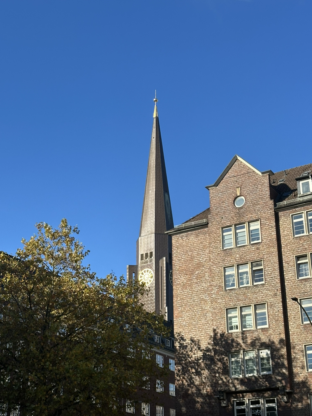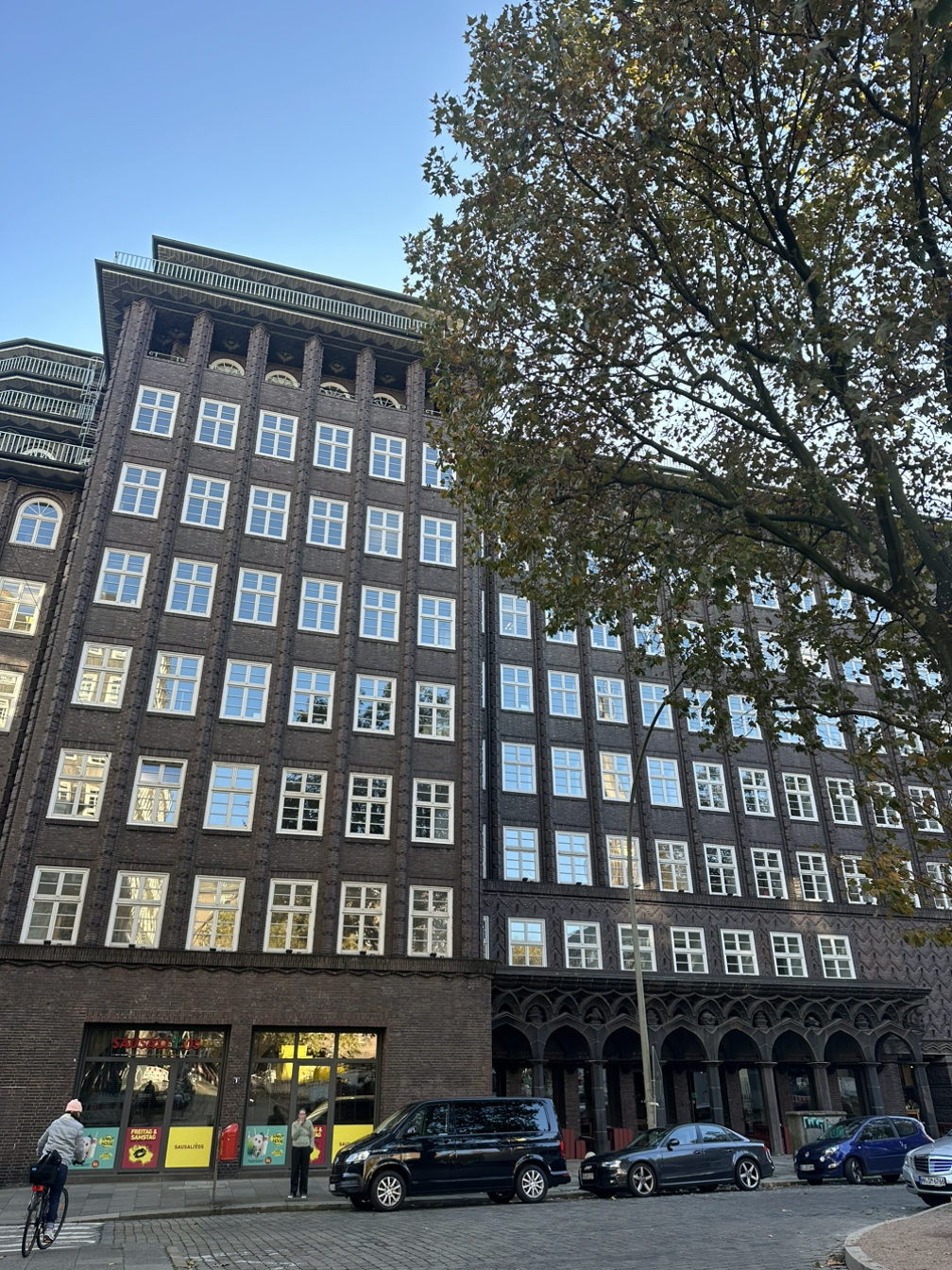 처음으로 간 곳은 칠레 광장이라는 곳이다. 배 모양을 닮은 건물이라는데 안에서 봐서인지 배 모양은 잘 느껴지지 않았지만 갈색의 건물이 예뻤다. 그리고 지금 가을이라 단풍이 노랗게 물들었는데 갈색 건물과 노란색 나뭇잎이 잘 어울려 정석적인 ‘가을’ 같은 풍경이었다. 다음으로 향한 곳은 슈파이허슈타트라는 곳이다. 함부르크가 항구 도시라서 그런지 창고로 사용되는 건물이 많았는데 이곳도 참고로 사용되는 건물에 상점과 식당이 입점한 곳이다. 푸른 하늘 노란 나뭇잎 그리고 붉은 벽돌 건물이 예뻤다.